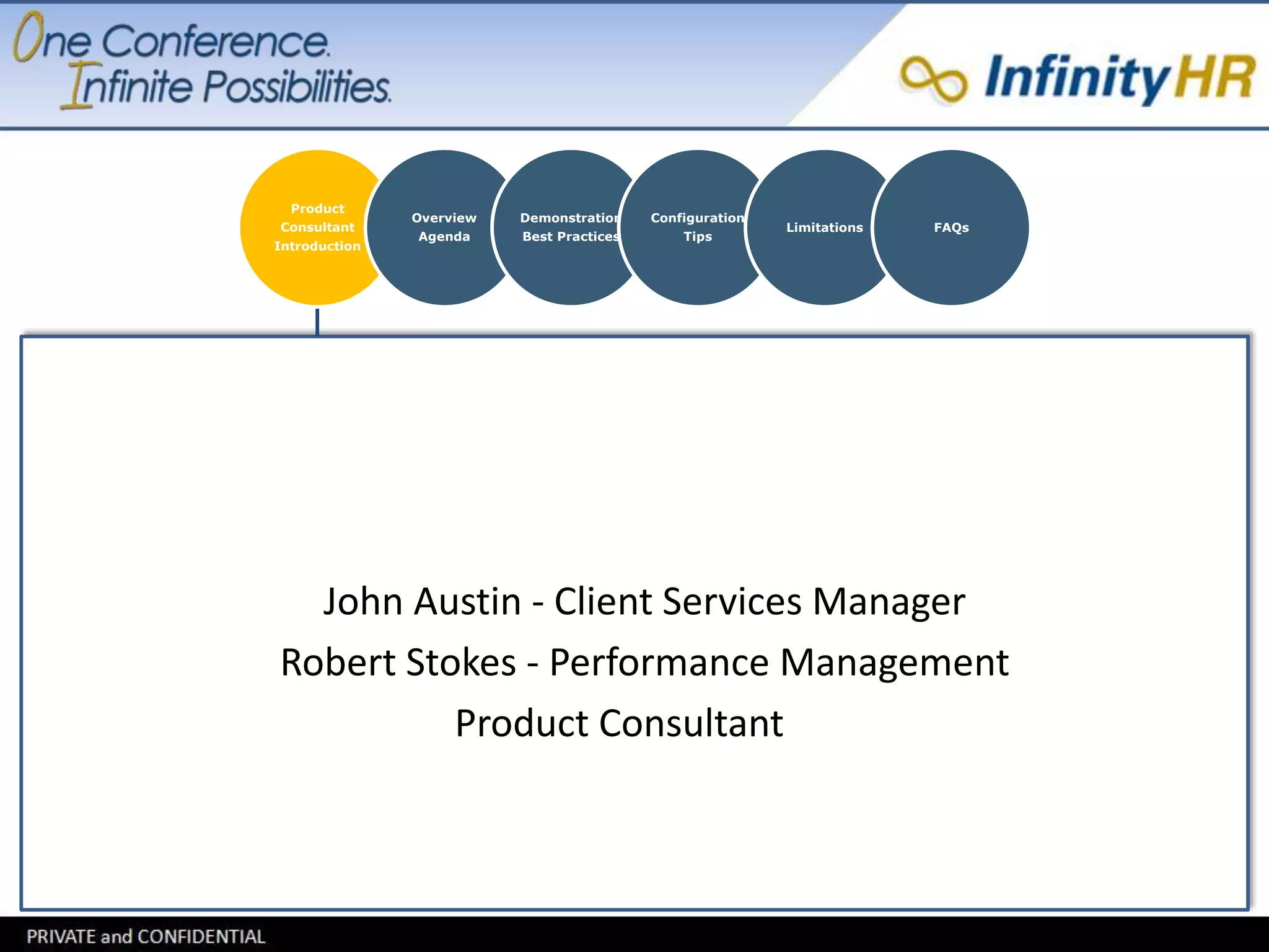 This document outlines an agenda for demonstrating a performance management software. It includes an introduction, overview, demonstration of key features like reviews, training and positions. It also covers best practices for configuration, tips, limitations and frequently asked questions. The demonstration would walk through setting up sample employee/manager data, creating a review form and assigning reviews. It also addresses configuration of related features like positions, training and workflows.