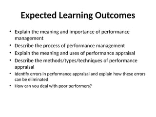 • Describe the process of performance management