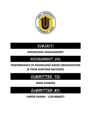 The document discusses knowledge management (KM) in organizations, emphasizing its role in fostering innovation while highlighting challenges like inefficient knowledge sharing that can hinder performance. It outlines methods for auditing organizational knowledge capabilities, including knowledge needs analysis, inventory analysis, flow analysis, and mapping. Overall, effective KM is crucial for organizations to identify and leverage their knowledge assets to enhance competitiveness and drive innovation.
