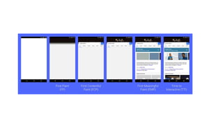 The document discusses improving the performance of a website by measuring key metrics like Time to Interactive and Speed Index. It describes optimizing the site through three iterations: reducing bundle size by 50% and eliminating duplicates; lazy loading and preloading assets; and implementing a headless CMS and static site generator. These changes reduced Time to Interactive on mobile from 15 to 5.7 seconds and desktop from 17.5 to 1.1 seconds, cutting the bounce rate by 20%. Key takeaways are measuring performance critically impacts the user experience.