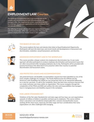 Performance Renew is a New York City-based consulting firm specializing in talent management and leadership development, emphasizing the importance of trained leadership and HR teams. They offer a variety of training programs covering employment law, management skills, employee engagement, change management, and strategic HR to help organizations navigate complexities and improve workforce dynamics. The firm is led by Natasha Bowman, an experienced professional in HR and labor law, committed to fostering positive workplace environments through effective leadership development.