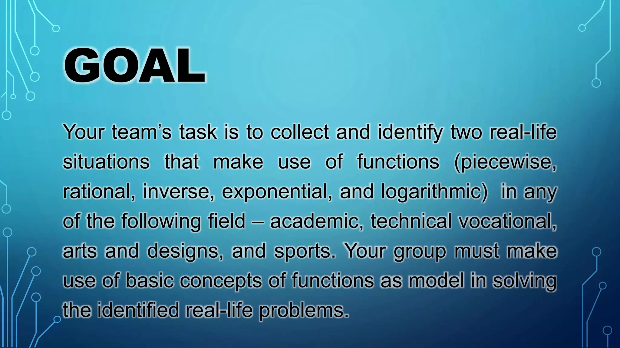 1. Identify two real-life situations involving functions from fields like academics, vocations, arts, or sports.