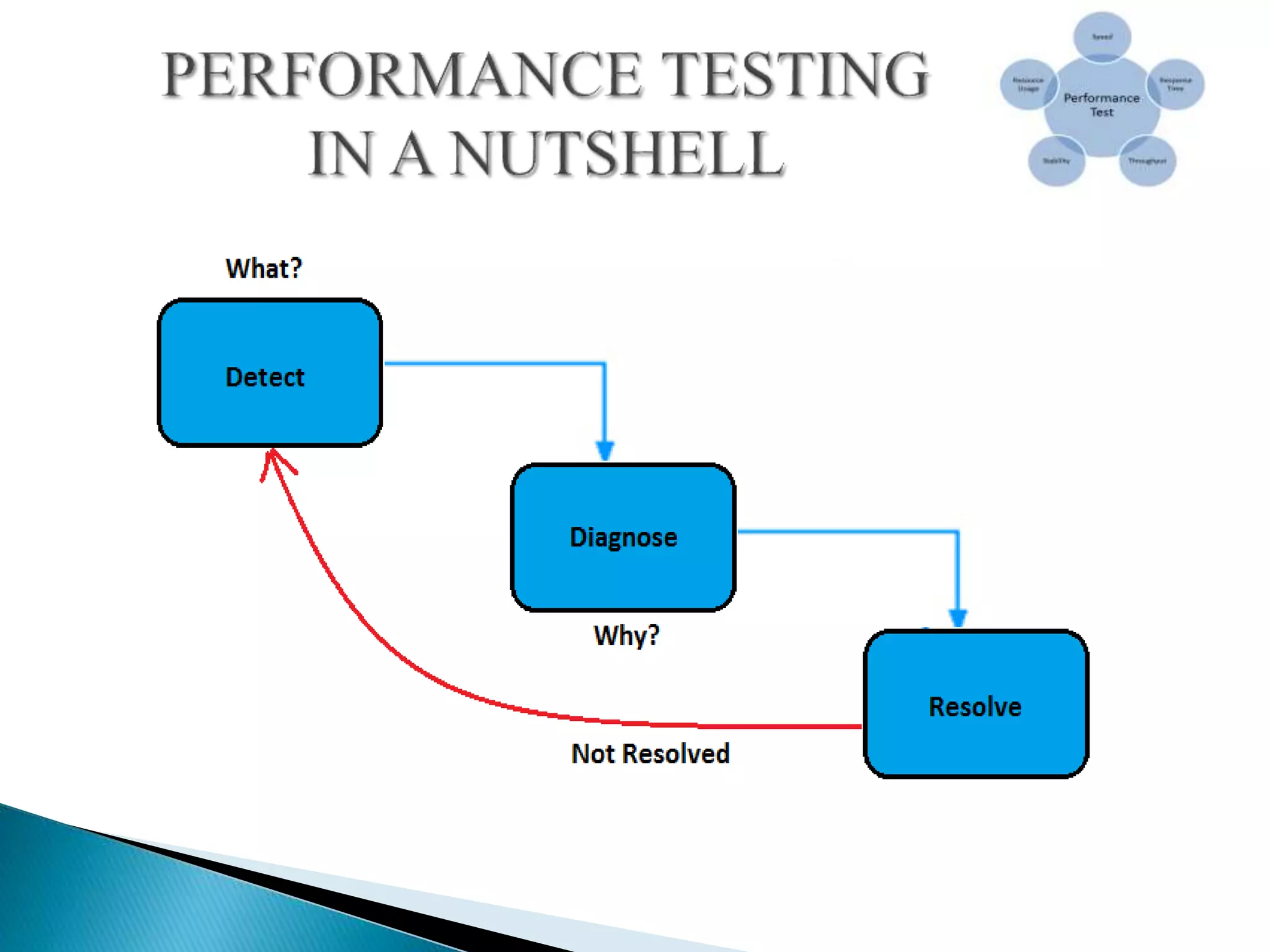 The document discusses performance testing, which is done to evaluate how a system performs under certain workloads. It aims to determine a system's speed, scalability, stability and other quality attributes. The document outlines different types of performance tests like load testing and stress testing. It explains key performance metrics such as response time, throughput and how performance testing helps improve quality and reduce risks. Overall, performance testing is important to ensure applications meet expectations before release.