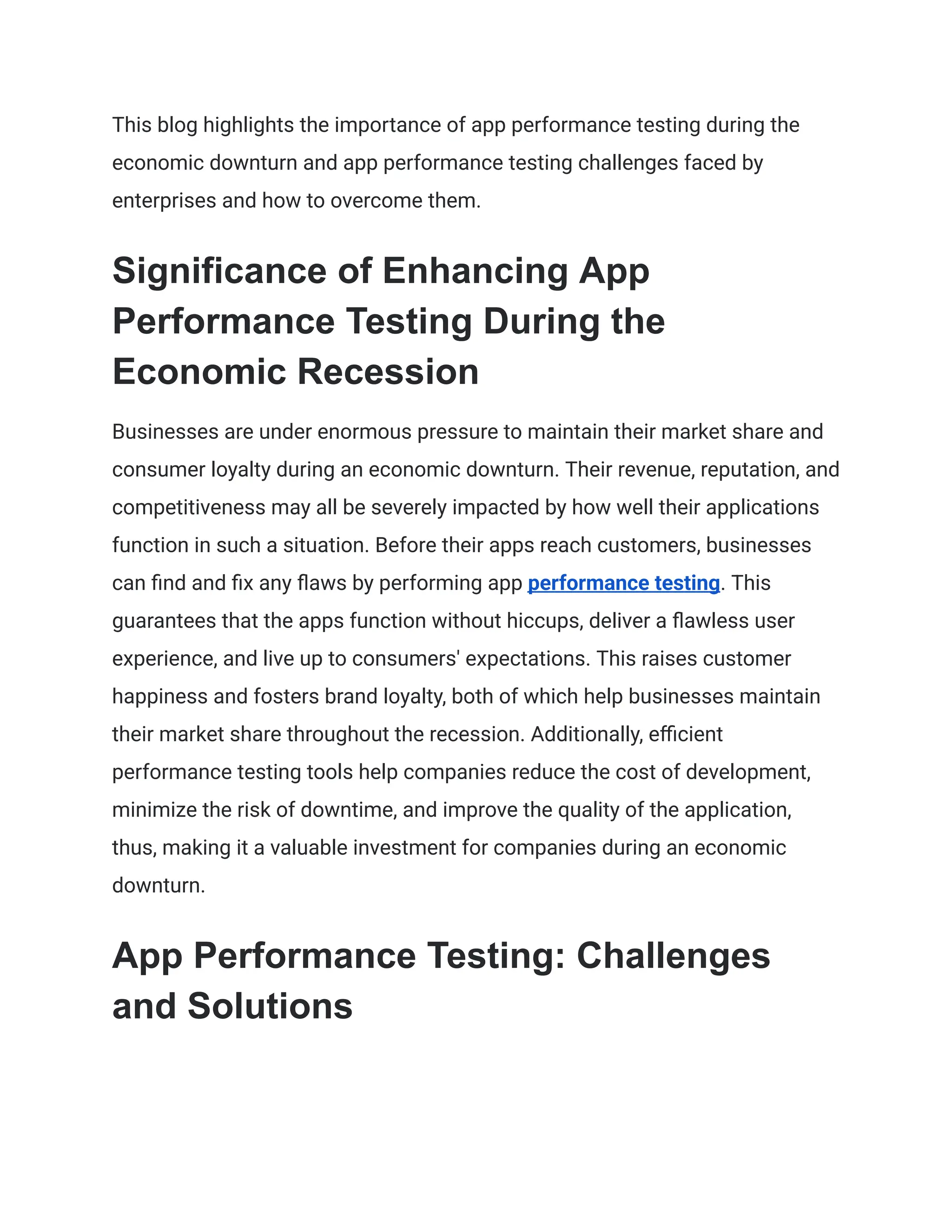 Mobile applications have assimilated into our daily lives and are used for a variety of things, including entertainment, education, banking, and shopping. Before applications are made available to the general public, their performance and stability are assessed through the process of app performance testing. With the increasing demand for mobile applications, it is imperative to ensure that they deliver a seamless digital experience without any performance issues.