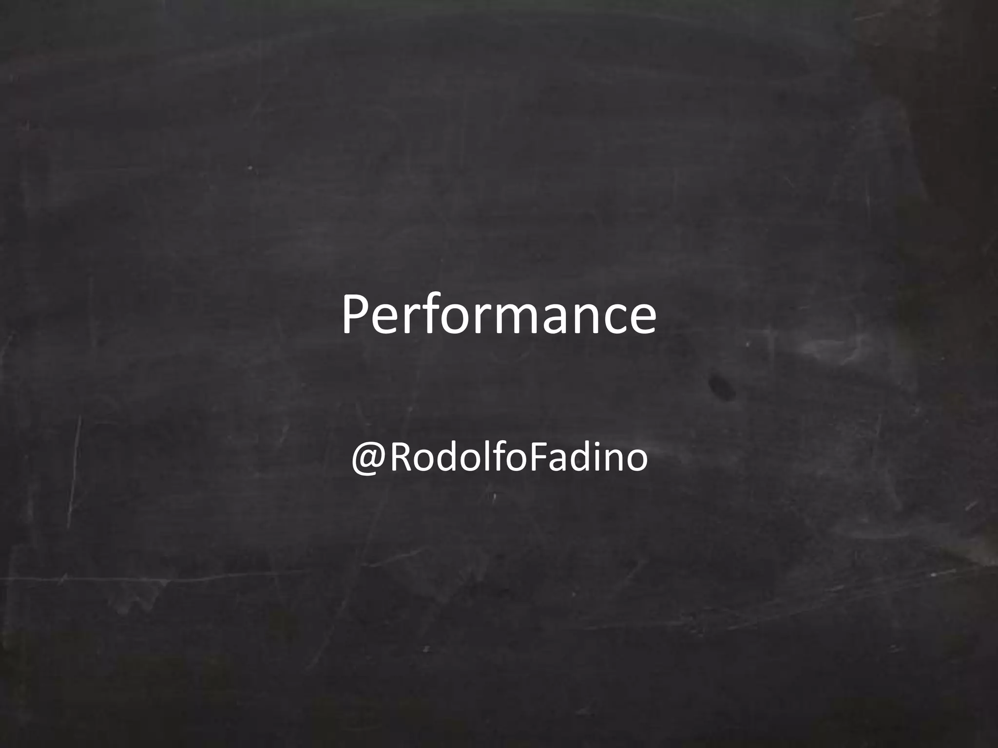 The document discusses factors that affect website performance, including front-end elements like CSS, JavaScript, images, and back-end elements like caching, threading, and database queries. It notes that only 10-20% of response time is spent on downloading HTML, so focus should be on optimizing other parts of the page load. It also outlines the anatomy of an HTTP request and lists 14 rules for improving performance, such as reducing HTTP requests, using content delivery networks, gzipping components, and making AJAX cacheable. It emphasizes that teams should regularly audit performance and prioritize optimizations.