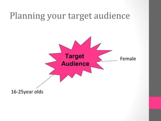 This document provides guidance on creating a target audience profile for advertising purposes. It explains that a target audience profile should include:
