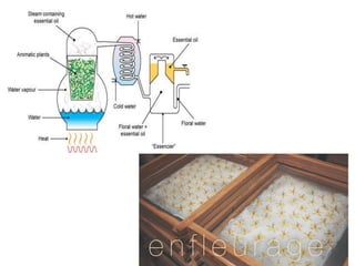 This document provides an overview of perfumes. It defines perfumes as mixtures of fragrant essential oils, fixatives, and solvents used to provide a pleasant scent. It discusses the history of perfumes and describes their composition, classification, ingredients, allergens, and proper storage. The key information presented includes the three main components of perfumes - essential oils, fixatives, and solvents - as well as the top, middle, and base notes that provide perfumes' scents.