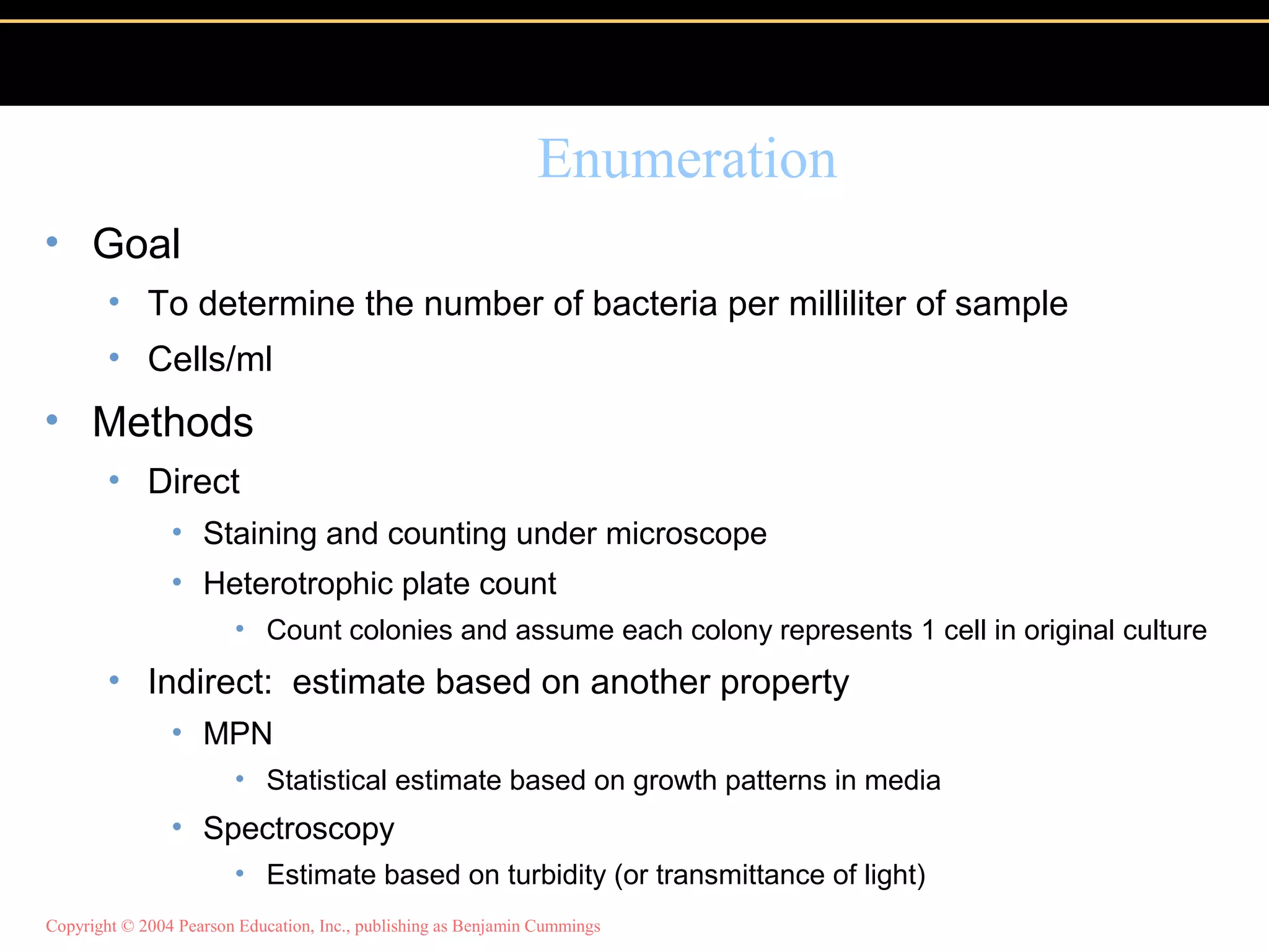 Dokumen tersebut memberikan penjelasan mengenai berbagai metode untuk menghitung jumlah mikroba dalam suatu sampel, baik secara langsung maupun tidak langsung. Metode secara langsung meliputi pewarnaan dan penghitungan di bawah mikroskop, sedangkan metode tidak langsung meliputi hitung koloni heterotrof dan Most Probable Number. Dokumen tersebut juga menjelaskan syarat-syarat perhitungan jumlah mikroba