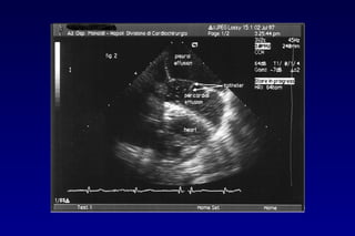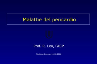 Il pericardio è un sacco fibroso che avvolge il cuore e ha funzioni fisiologiche importanti, come limitare la dilatazione cardiaca e ridurre l'attrito durante il movimento del cuore. La pericardite acuta è un'infiammazione del pericardio, spesso causata da infezioni virali, e si manifesta con dolore toracico e segni clinici specifici. La diagnosi si basa su anamnesi, esame obiettivo, ecg ed ecocardiogramma, mentre la terapia può includere pericardiocentesi e drenaggio chirurgico.
