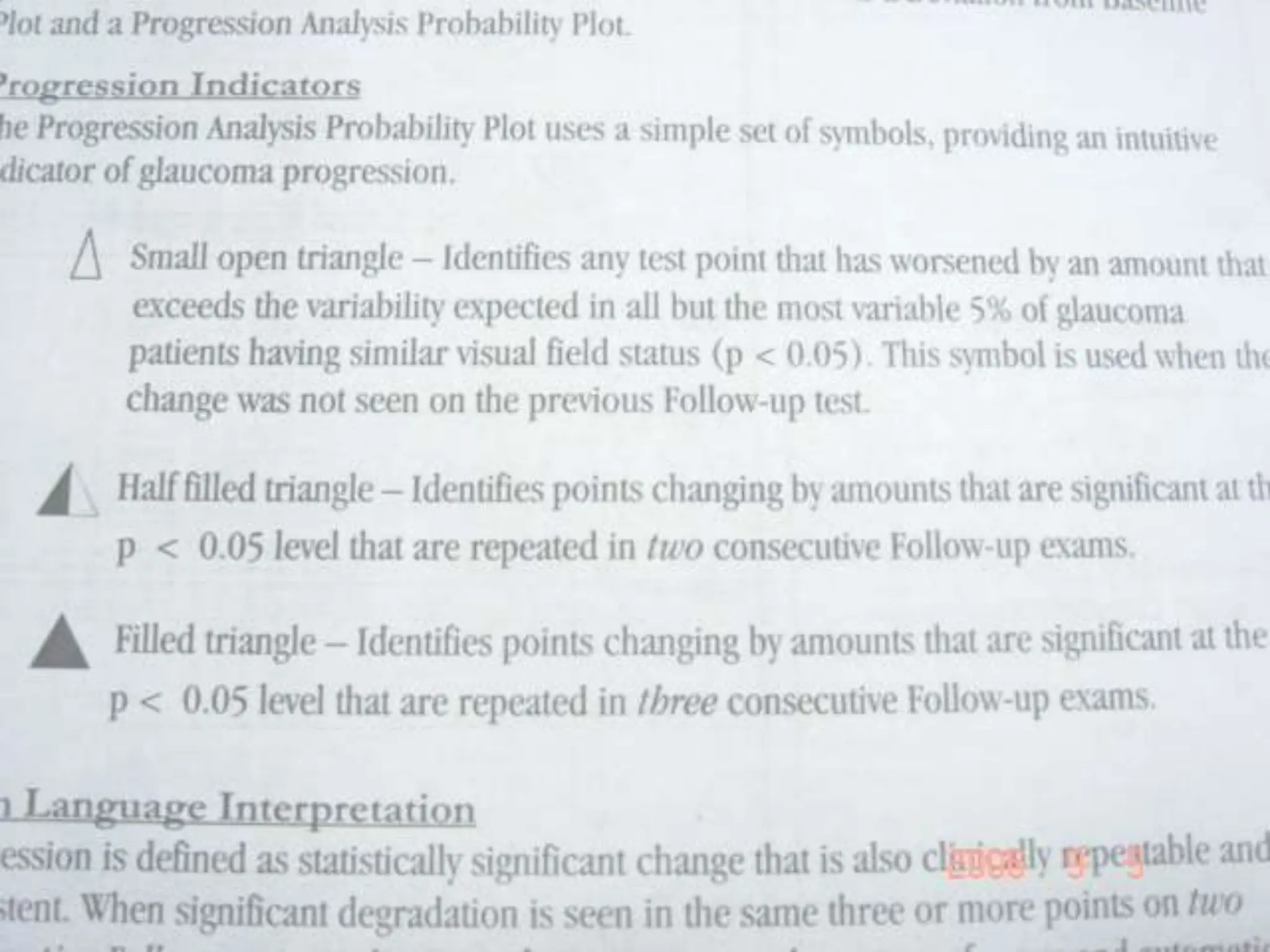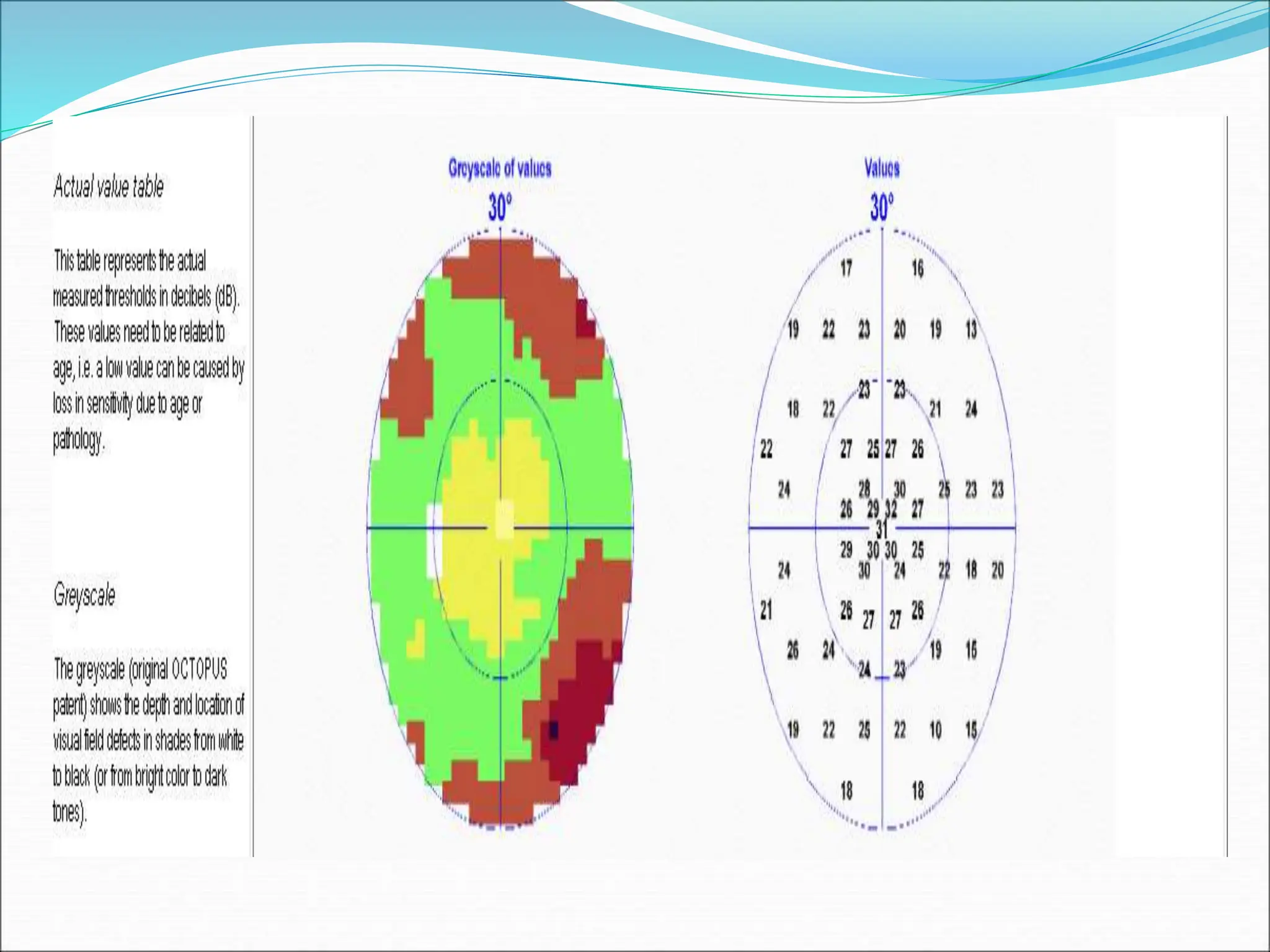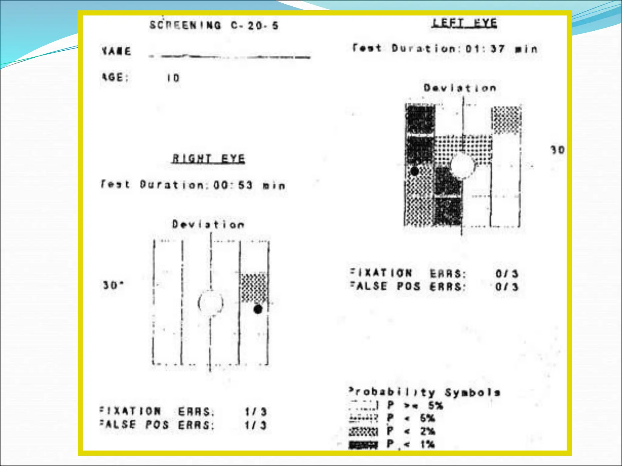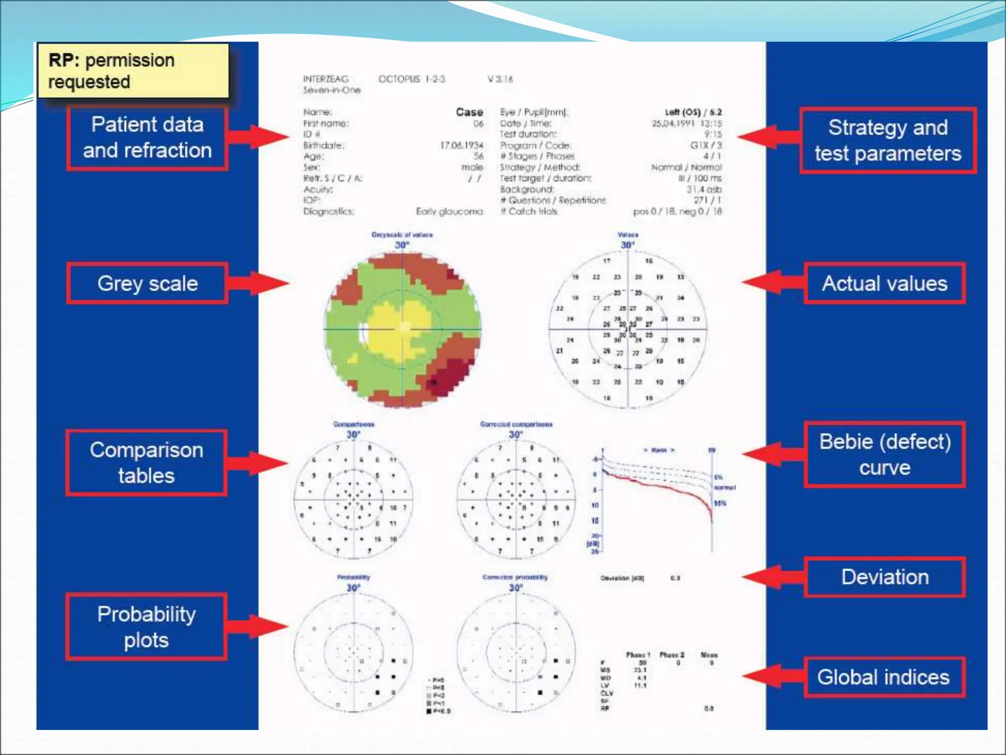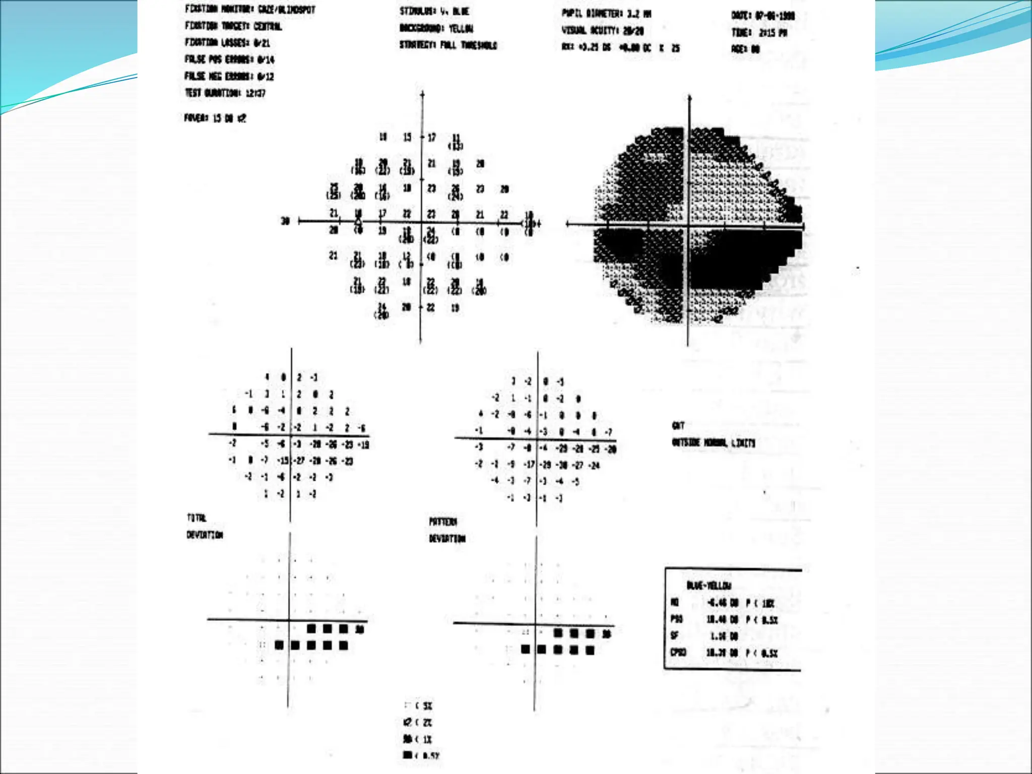 The document discusses ideal features and methods for glaucoma screening, emphasizing tests like octopus perimetry and newer techniques such as short wave automated perimetry and frequency doubling perimetry. It details procedures for detecting and analyzing progression in visual field defects with statistical evaluations and clinical examples for effective monitoring. The importance of establishing baselines and employing advanced software for detecting changes is highlighted to improve patient management and outcomes.