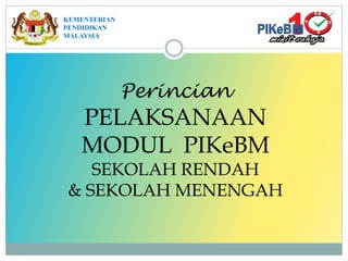 Modul ini membahas pelaksanaan program interaktif kemahiran bahasa Melayu (PIKeBM) di sekolah rendah dan menengah di Malaysia. Program ini bertujuan untuk meningkatkan kemampuan berbahasa lisan siswa dalam bahasa Melayu melalui berbagai aktivitas kokurikulum seperti olahraga, klub, dan organisasi sekolah. Modul ini menjelaskan sasaran, tujuan, dan pelaksanaan modul-modul PIKeBM serta bagaimana aktivitas-