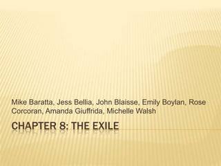 CHAPTER 8: THEEXILEMike Baratta, Jess Bellia, John Blaisse, Emily Boylan, Rose Corcoran, Amanda Giuffrida, Michelle Walsh