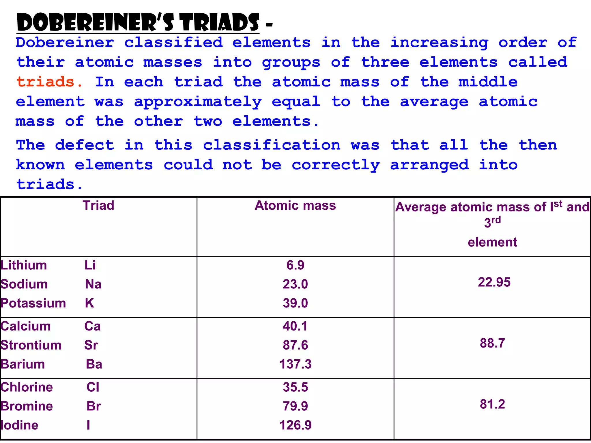 The document discusses the periodic classification of elements. It describes early attempts at classification including grouping elements as metals and non-metals. Dobereiner classified elements into triads based on atomic mass. Newlands arranged elements in order of increasing atomic mass in octaves but this classification had defects. Mendeleev arranged elements in order of atomic mass and predicted properties of undiscovered elements, establishing the basis of the modern periodic table. The modern periodic table arranges elements by atomic number and groups elements with similar properties and valence electrons.