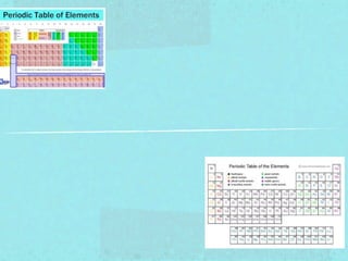 The document discusses the periodic table, including that Dmitri Mendeleev created the periodic table in 1869 to organize the known elements according to their atomic structure and properties. The periodic table arranges elements in order of increasing atomic number from left to right and groups elements with similar properties together vertically. It also provides details about the elements oxygen, gold, and sodium, including their atomic numbers, symbols, masses, examples of occurrences, and additional facts.