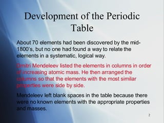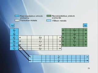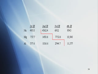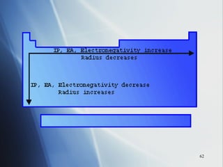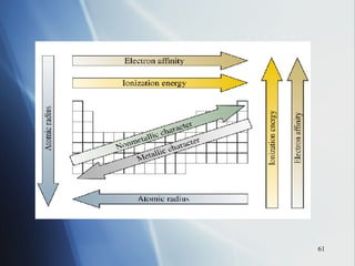 The document summarizes key periodic trends in the properties of elements as they relate to their position in the periodic table, including: