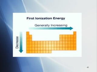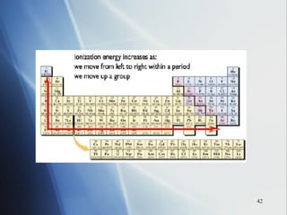 2) Ionization energy decreases down a group as atoms gain principal energy levels but increases across a period as more protons are added.