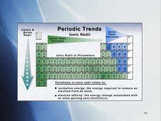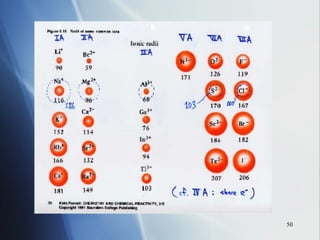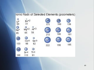 3) Positive ion size decreases and negative ion size increases relative to their parent atoms. Ion sizes also increase down a group.
