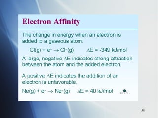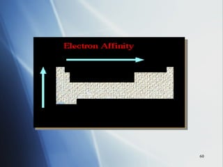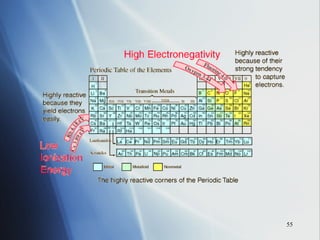 4) Electronegativity decreases down a group but increases across a period toward the nonmetals.