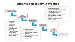 Achieved by optimising the health of the patient before surgery through prehabilitation and then delivering evidence-based best care in the perioperative period.