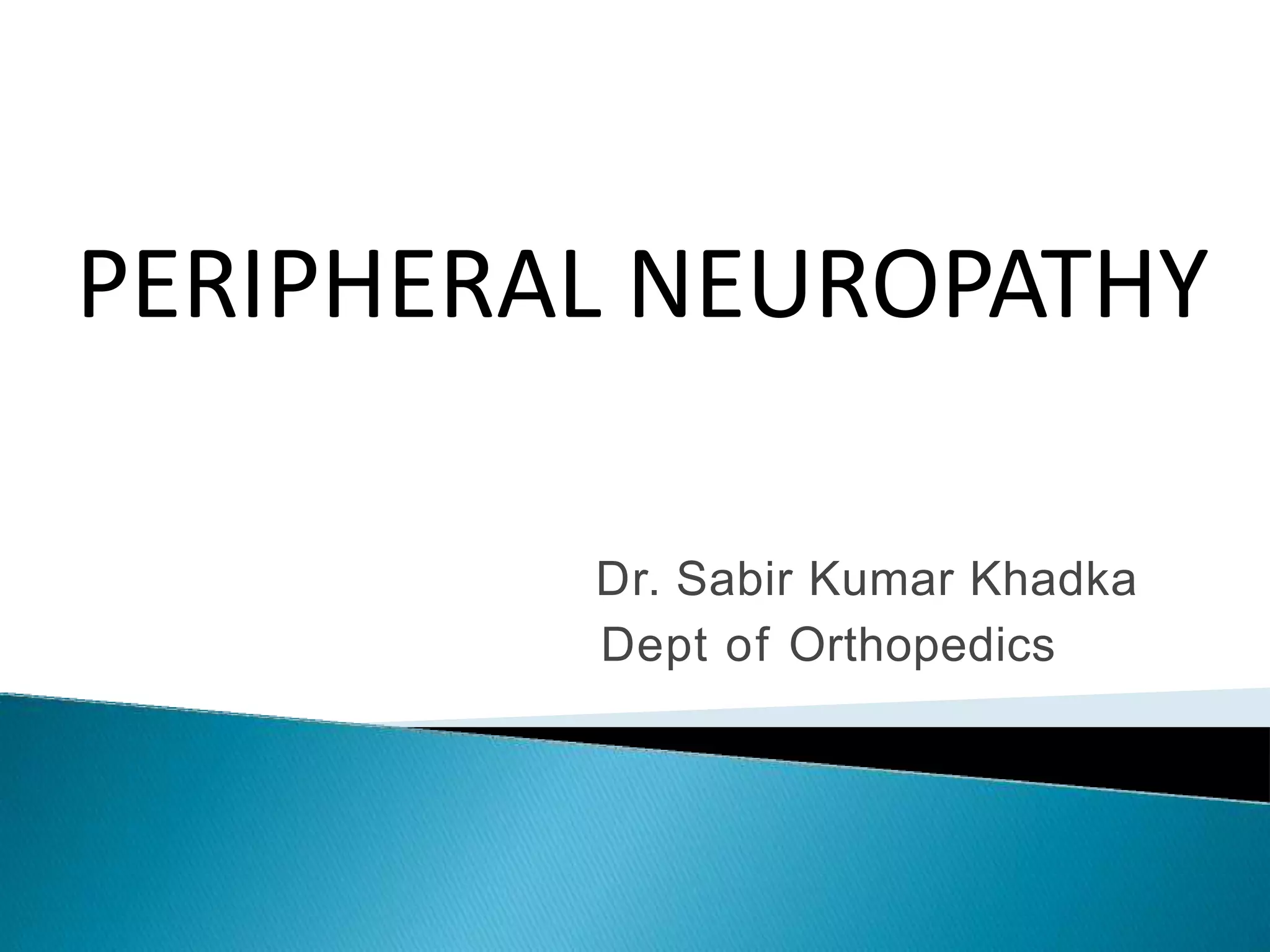 1. It defines peripheral neuropathy and describes the different types that can affect motor, sensory, or autonomic nerves.