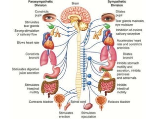 I. The peripheral nervous system carries signals between the central nervous system and the rest of the body. It has three main components - cranial, spinal, and autonomic. There are three main types of nerve fibers - A, B, and C - which differ in diameter, myelination, and function.