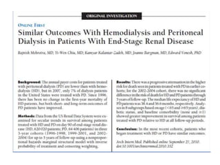 Peritoneal dialysis (PD) has several potential advantages over hemodialysis (HD), though patient and clinical factors must be considered when determining the optimal renal replacement therapy (RRT). PD is associated with better preservation of residual renal function, higher quality of life due to greater flexibility, and lower risk of infection. However, HD requires more nursing staff per patient. The "right modality at the right time" depends on individual patient characteristics and preferences as well as resource availability. Overall, PD can be a cost-effective first-line RRT option when integrated with HD.