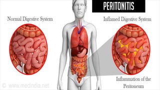 - The main paths that can lead to peritonitis, including GI perforation, bacterial translocation, exogenous contamination, and female genital infections.