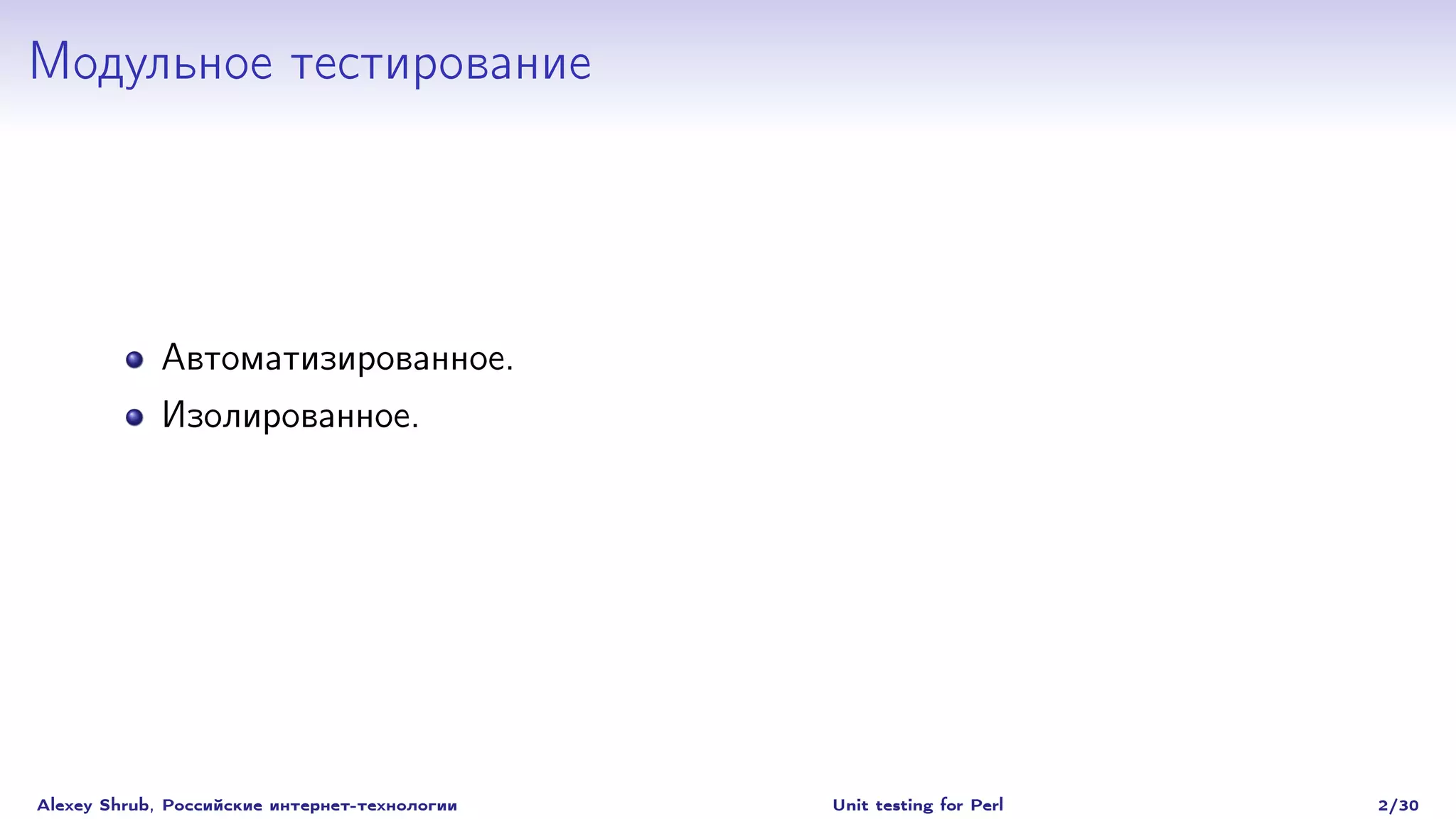 Документ описывает важность модульного тестирования в Perl, включая необходимость верификации, локализацию ошибок и раннее обнаружение проблем. Приводятся примеры функционального тестирования, тестирования исключений и использования мок-объектов. Также упоминаются инструменты для автоматизированного тестирования и проверки стиля кодирования.
