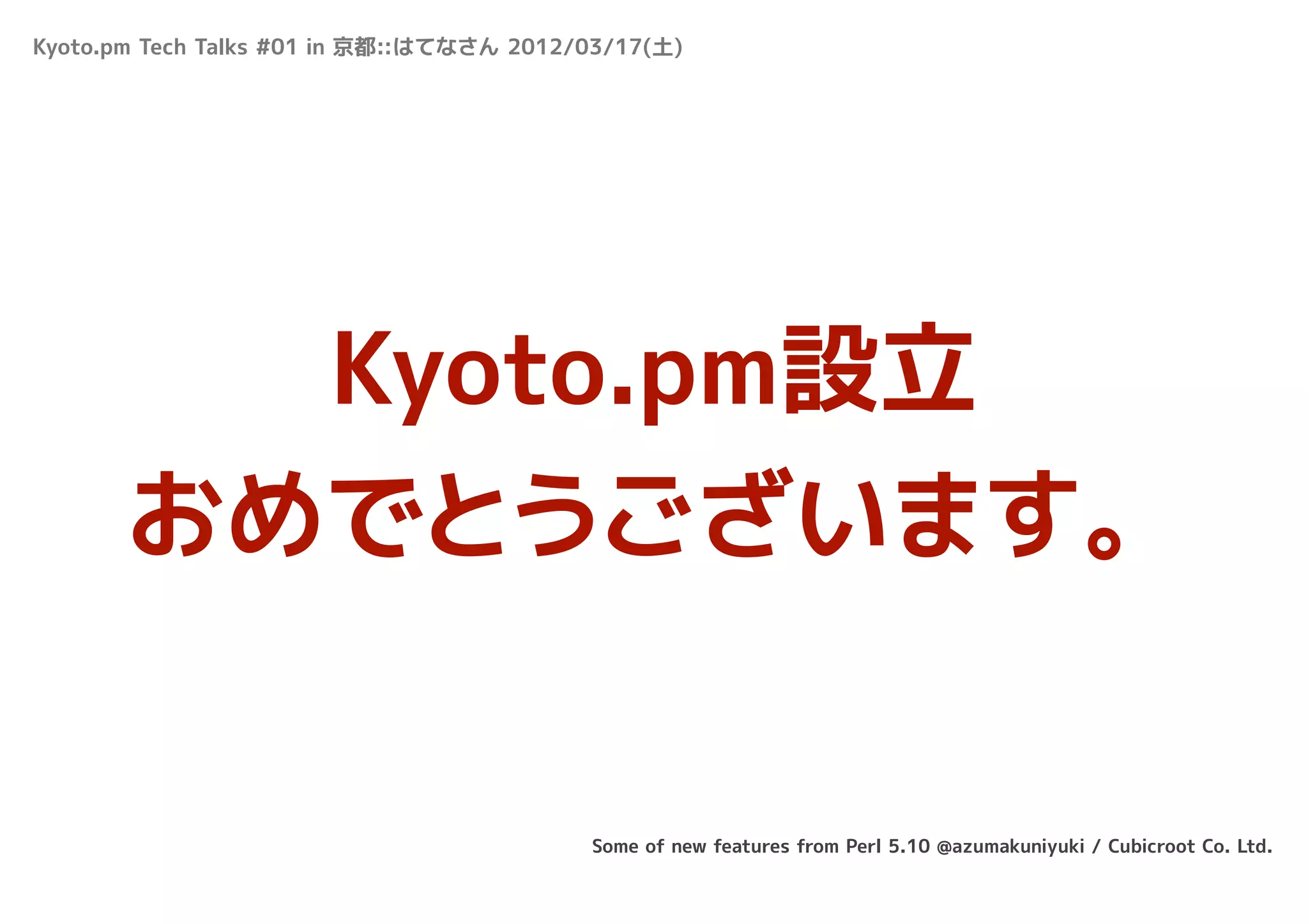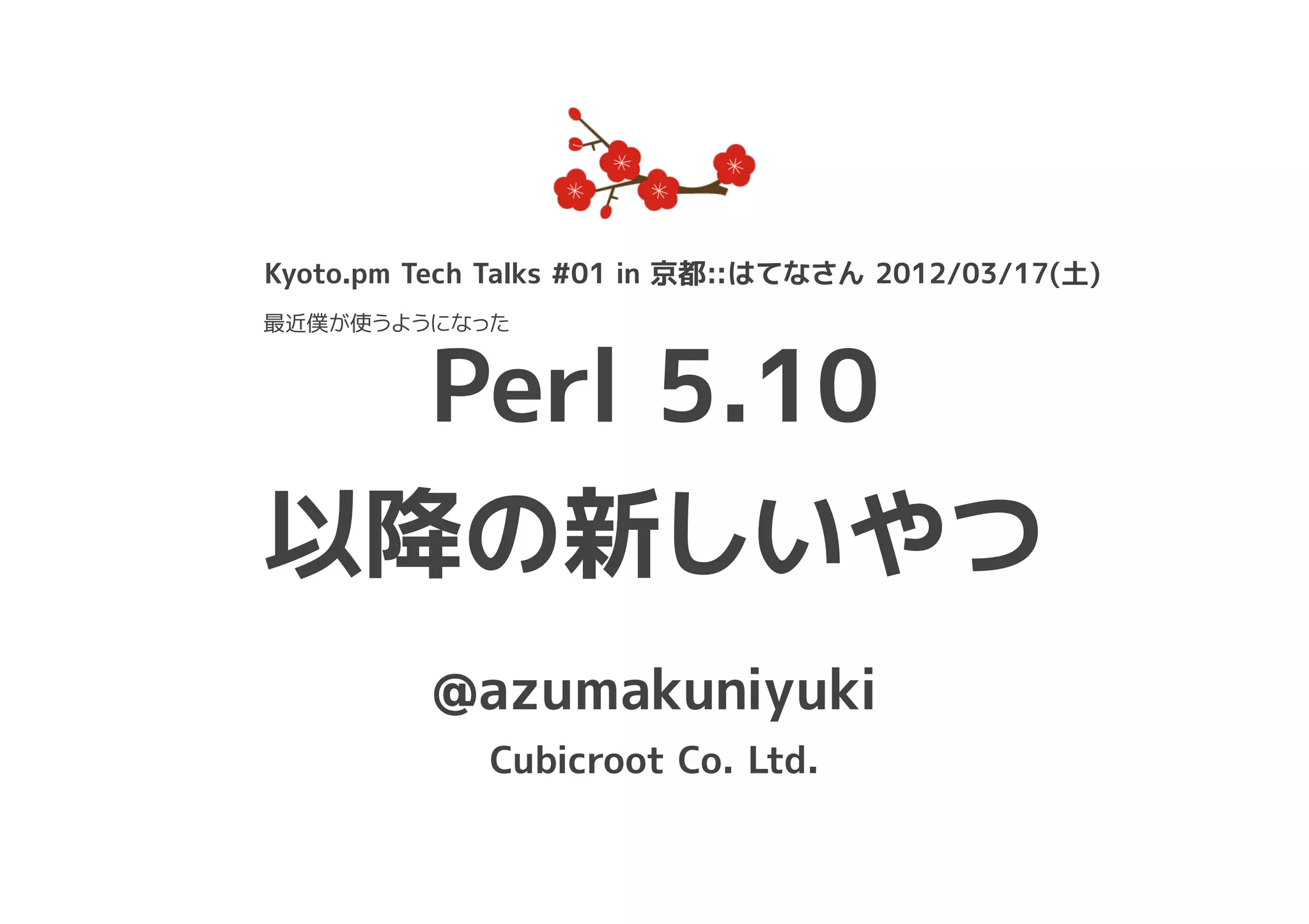 Some of new features from Perl 5.10 @azumakuniyuki / Cubicroot Co. Ltd.