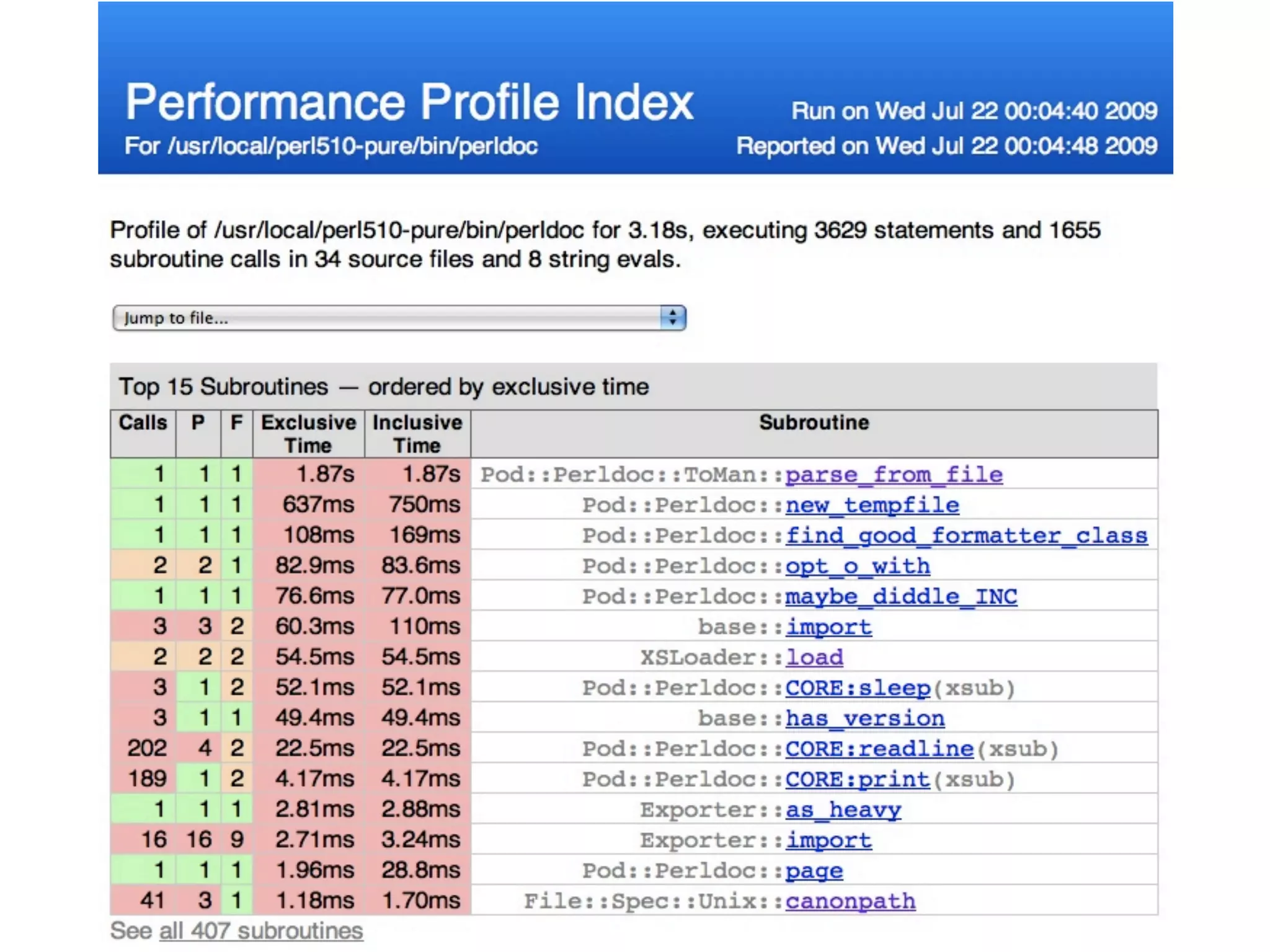 The document discusses memory profiling and performance profiling techniques for Perl programs, highlighting tools like devel::nytprof and devel::size. It covers how to use these tools for tracking CPU usage, memory consumption, and generating detailed reports on subroutine performance. Additionally, it touches on the evolution of Perl over 25 years and introduces the concept of Perl 6, emphasizing the language's adaptability and rich ecosystem.