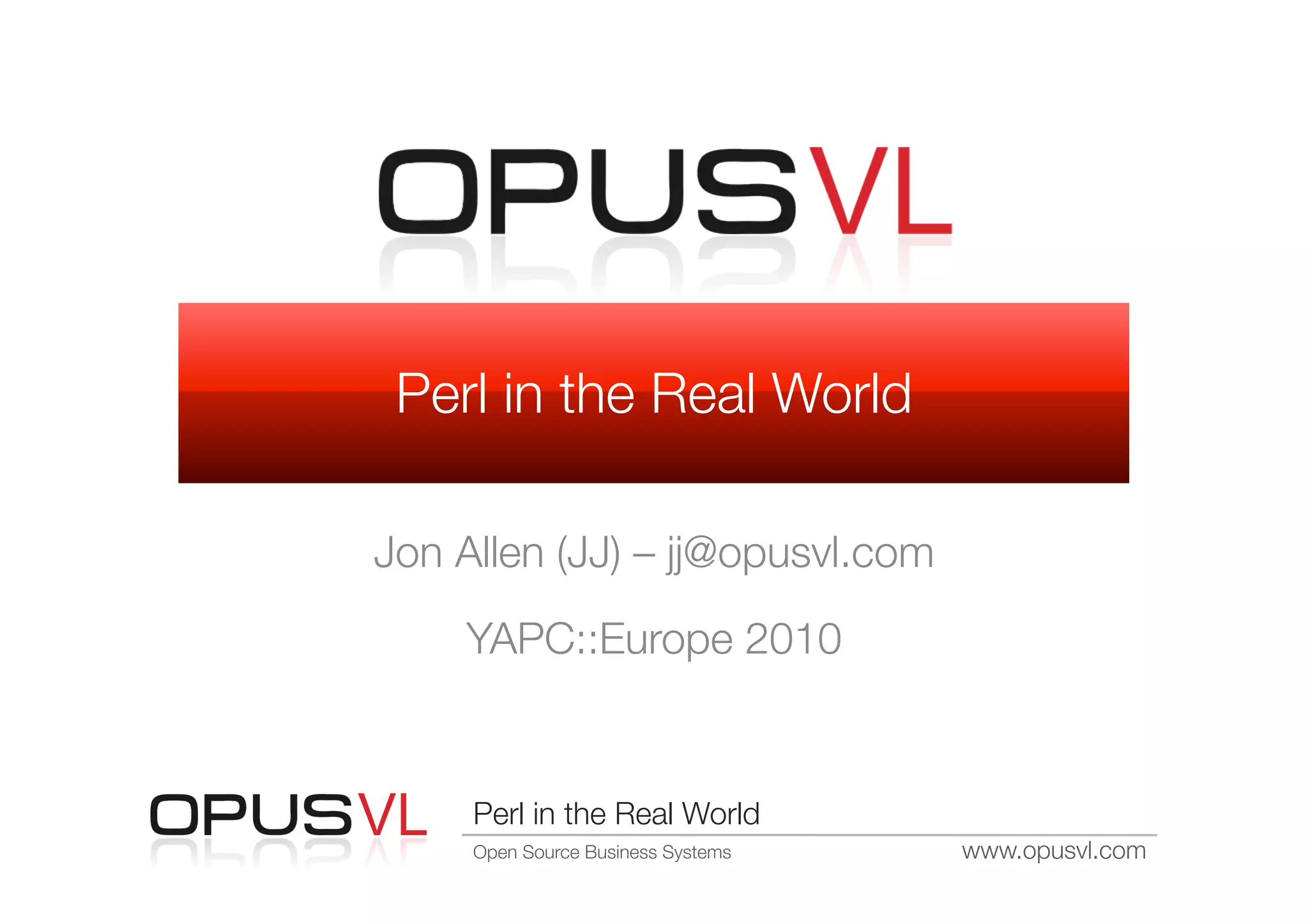 OpusVL is an open source development company based in the UK that has been in business since 2000. They provide bespoke software solutions for businesses using Perl and related technologies like Moose and Catalyst. One example project is a large intranet application for a national car dealership with multiple domains. The presentation discusses their modular architecture and use of Catalyst plugins as well as their deployment and packaging practices.
