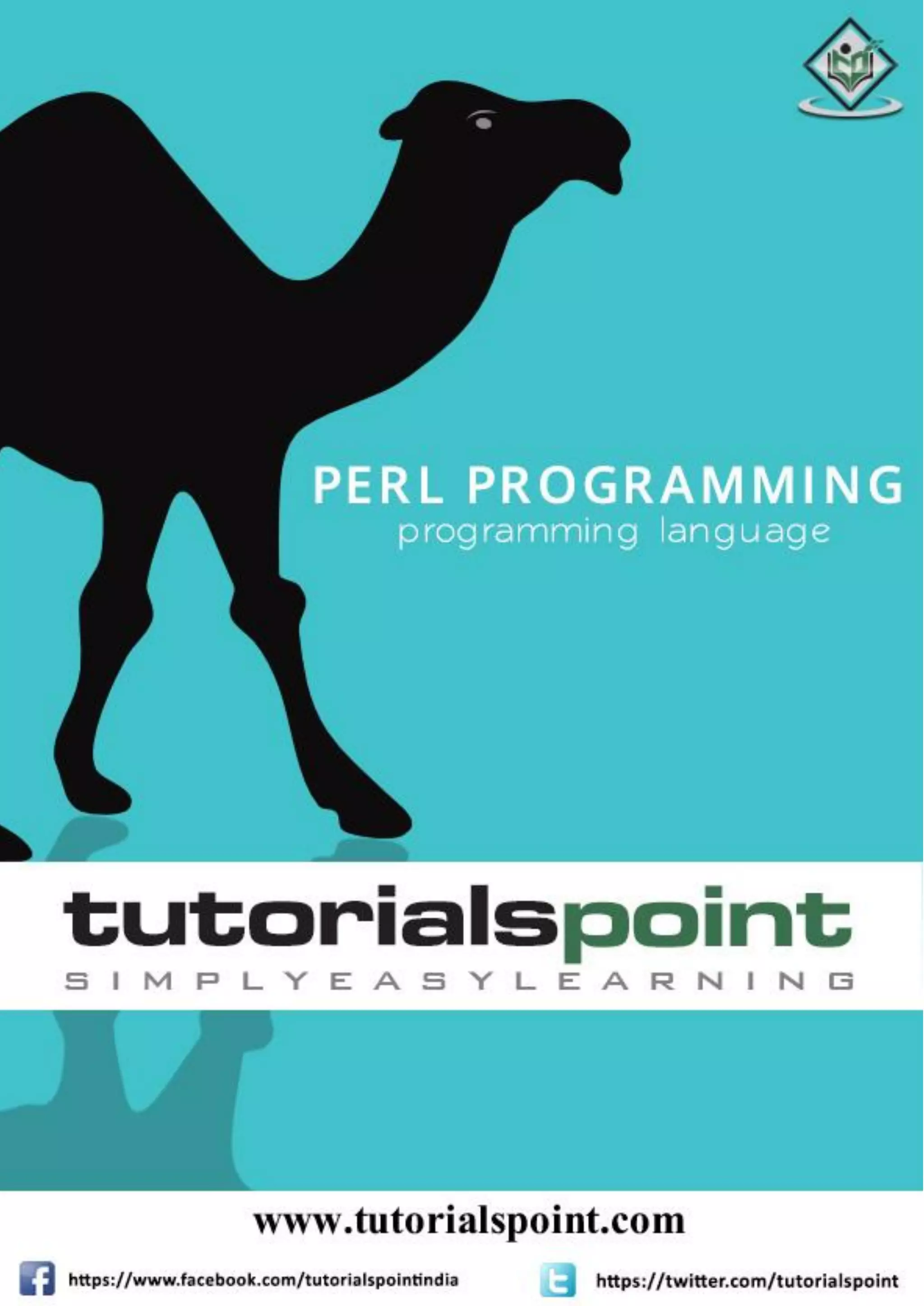 This document provides an introduction and overview of the Perl programming language. Perl was developed by Larry Wall for text processing and runs on various platforms including Windows, Mac OS, and Unix. It covers basic Perl concepts such as variables, scalars, arrays, hashes, conditional and loop statements. The tutorial is intended for beginners and assumes some familiarity with C and Unix shell programming. All content in the tutorial is copyrighted by Tutorials Point (I) Pvt. Ltd.