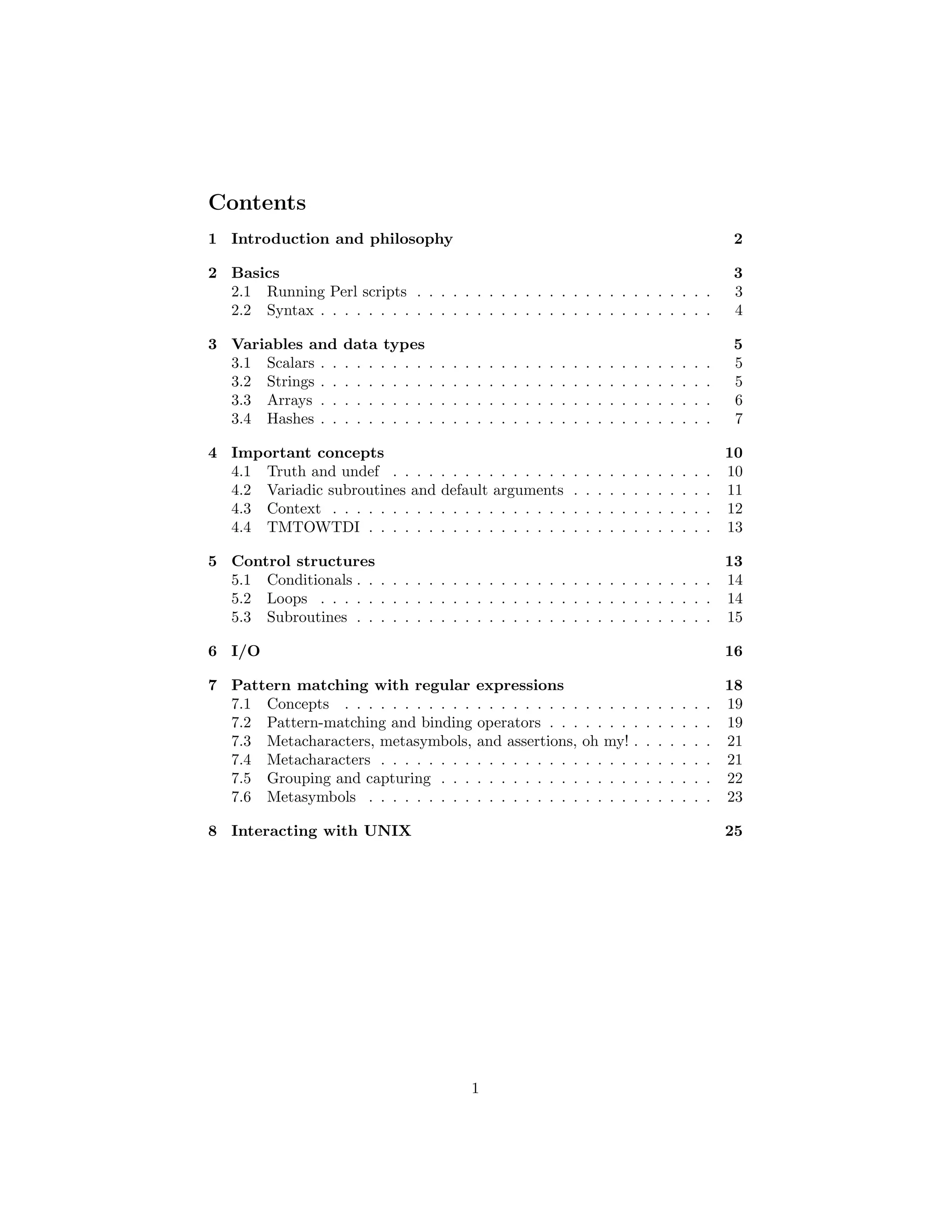 This document provides a crash course introduction to the Perl programming language. It discusses running Perl scripts, Perl's syntax which is case-sensitive, and built-in data types like scalars, strings, arrays and hashes. It also covers important concepts in Perl including truth and undef values, variadic subroutines, context, and the philosophy of "TMTOWTDI". The document concludes by discussing control structures, I/O, pattern matching with regular expressions, and interacting with the UNIX system in Perl.