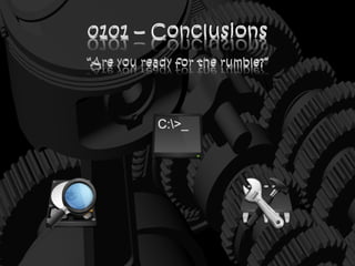 O documento aborda vulnerabilidades de segurança e técnicas de exploração, enfatizando a importância do entendimento profundo das vulnerabilidades e suas abordagens para mitigação, especialmente em relação ao conceito de 'programação orientada por permutação'. Ele discute a natureza das vulnerabilidades, suas classificações, e fornece exemplos de técnicas e ferramentas utilizadas na exploração e evasão. A apresentação propõe uma análise crítica do modelo de segurança atual e questiona a eficácia das medidas de proteção em evoluções de explorações conhecidas.