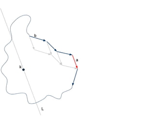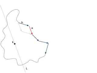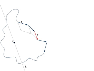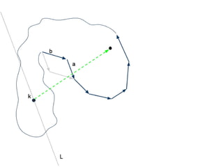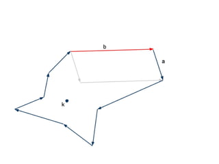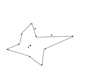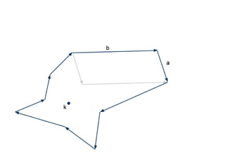 The document discusses different types of polygons including simple, convex, and star-shaped polygons. It then presents the convexification algorithm, which takes a star-shaped polygon and transforms it into a convex polygon through a series of edge swaps. The algorithm works by traversing the polygon and swapping any edges that form a left-hand turn. A proof is provided that this algorithm will always terminate with a convex polygon after at most n(n-1)/2 swaps, where n is the number of sides in the original polygon.