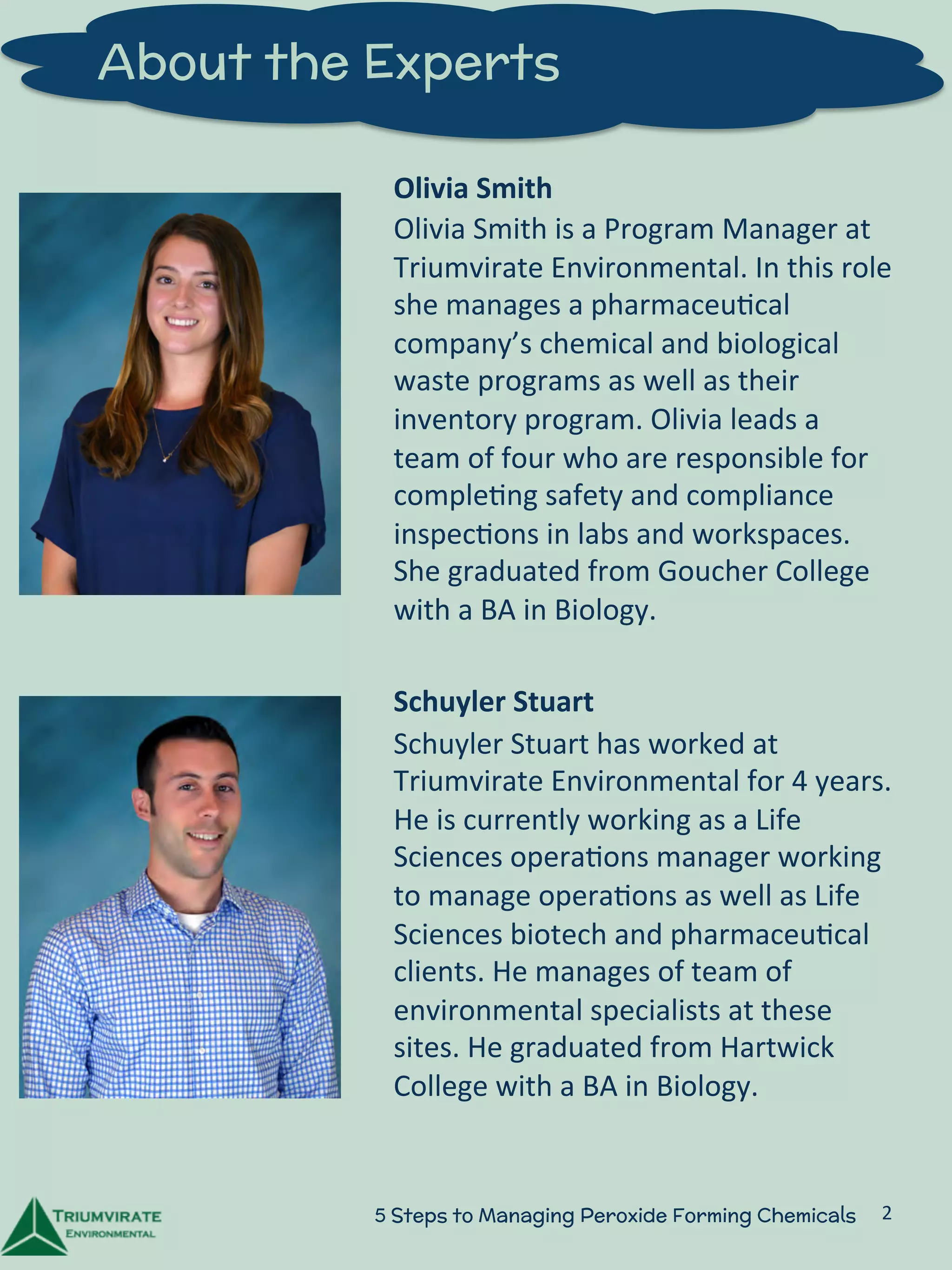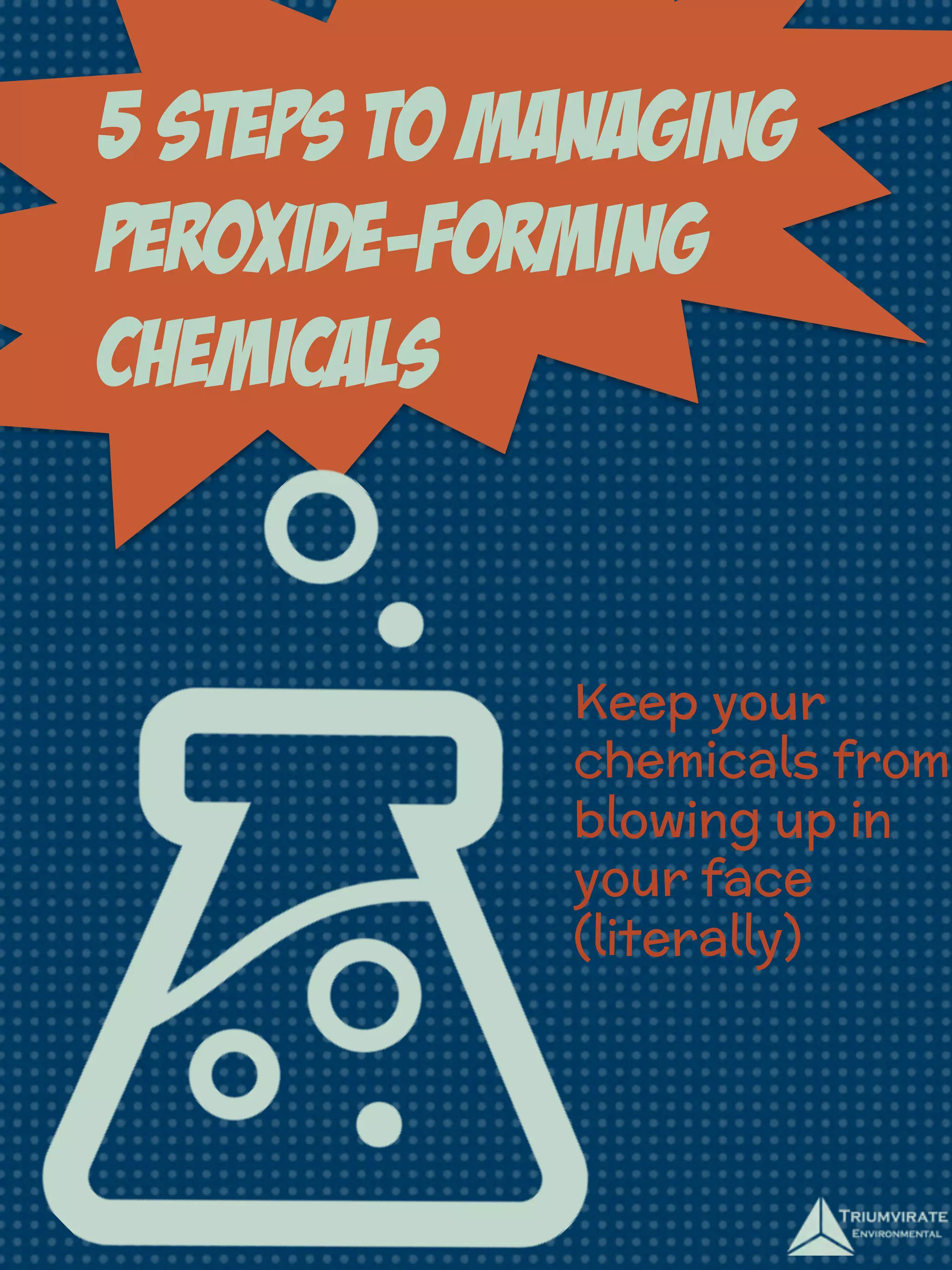 This document provides a 5-step guide to safely managing peroxide-forming chemicals in laboratories. Step 1 explains that peroxide formers are chemicals that can spontaneously form explosive peroxide compounds over time when exposed to factors like oxygen, light, or heat. Step 2 outlines protocols for proper storage, handling, and testing of peroxide formers. Step 3 recommends training researchers on identification and safety procedures for peroxide formers. Step 4 discusses determining appropriate disposal times based on chemical hazard classifications. Step 5 suggests developing long-term plans for continual education and chemical inventory management. The document aims to help laboratories avoid accidents from improperly managed peroxide-forming chemicals.