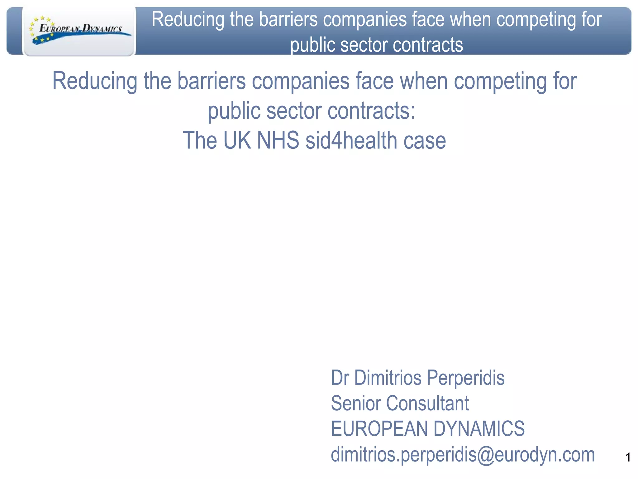 1) The NHS sid4health platform enables suppliers to create online profiles containing pre-qualification information to reduce barriers for small and medium enterprises (SMEs) competing for public sector contracts.
