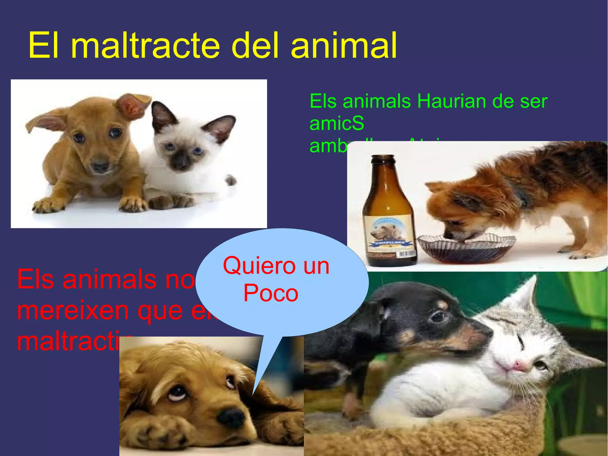 animal Els animals Haurian de ser amicS amb ells mAteixos. Quiero un Els animals no Poco mereixen que els maltractin.
