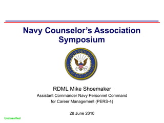 The Navy uses a career management system to match sailors to billets based on their preferences, skills, and the needs of the Navy, with over 1,500 sailors assigned to each detailer. There is friction in the system from unfunded training, medical issues, and other factors that reduce the number of sailors available for assignment. Detailers work to balance multiple factors in assignments while advocating for sailors and placement works to meet the needs of commands.