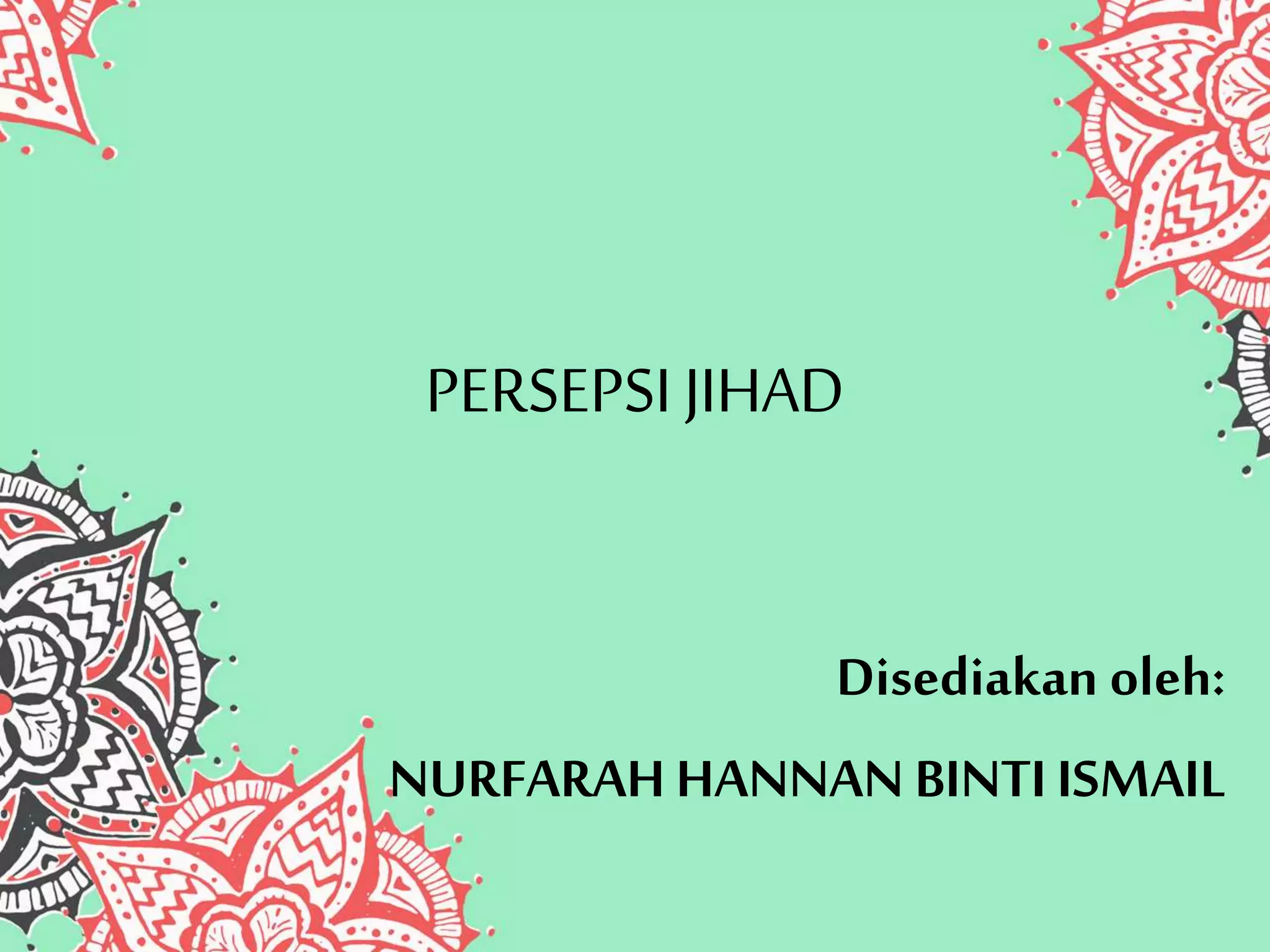 Dokumen ini menjelaskan persepsi jihad dalam Islam dan bagaimana ia sering disalahpahami oleh masyarakat barat. Jihad didefinisikan sebagai usaha bersungguh-sungguh untuk mencapai kebaikan dan keredhaan Allah, termasuk juga perang yang mempunyai etika dan syaratnya. Islam memandang jihad bukan hanya melalui peperangan, tetapi juga melalui pendidikan, kewangan, dan perjuangan menegakkan hak tanpa menganiaya yang tidak bersalah.