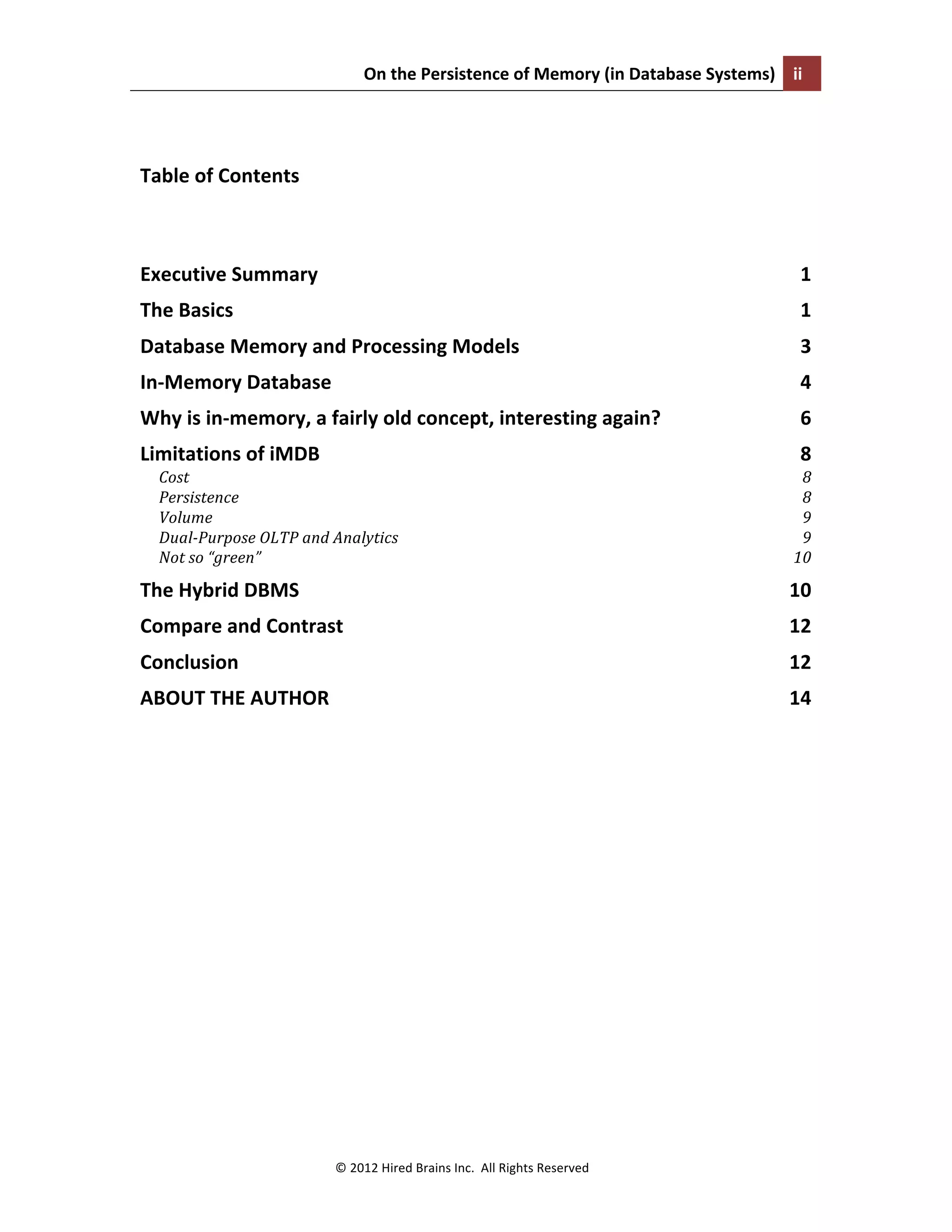 The document discusses the resurgence of interest in in-memory databases (IMDB) due to falling memory costs and increased capacity, yet notes that IMDBs face limitations in data persistence, scalability, and reliability, often needing conventional storage for backups. It contrasts IMDBs with hybrid database management systems (DBMS), which balance memory and disk use to support larger data volumes and broader analytics functions. Ultimately, while IMDBs offer performance advantages, they remain constrained by cost and practical concerns for enterprise-level applications.