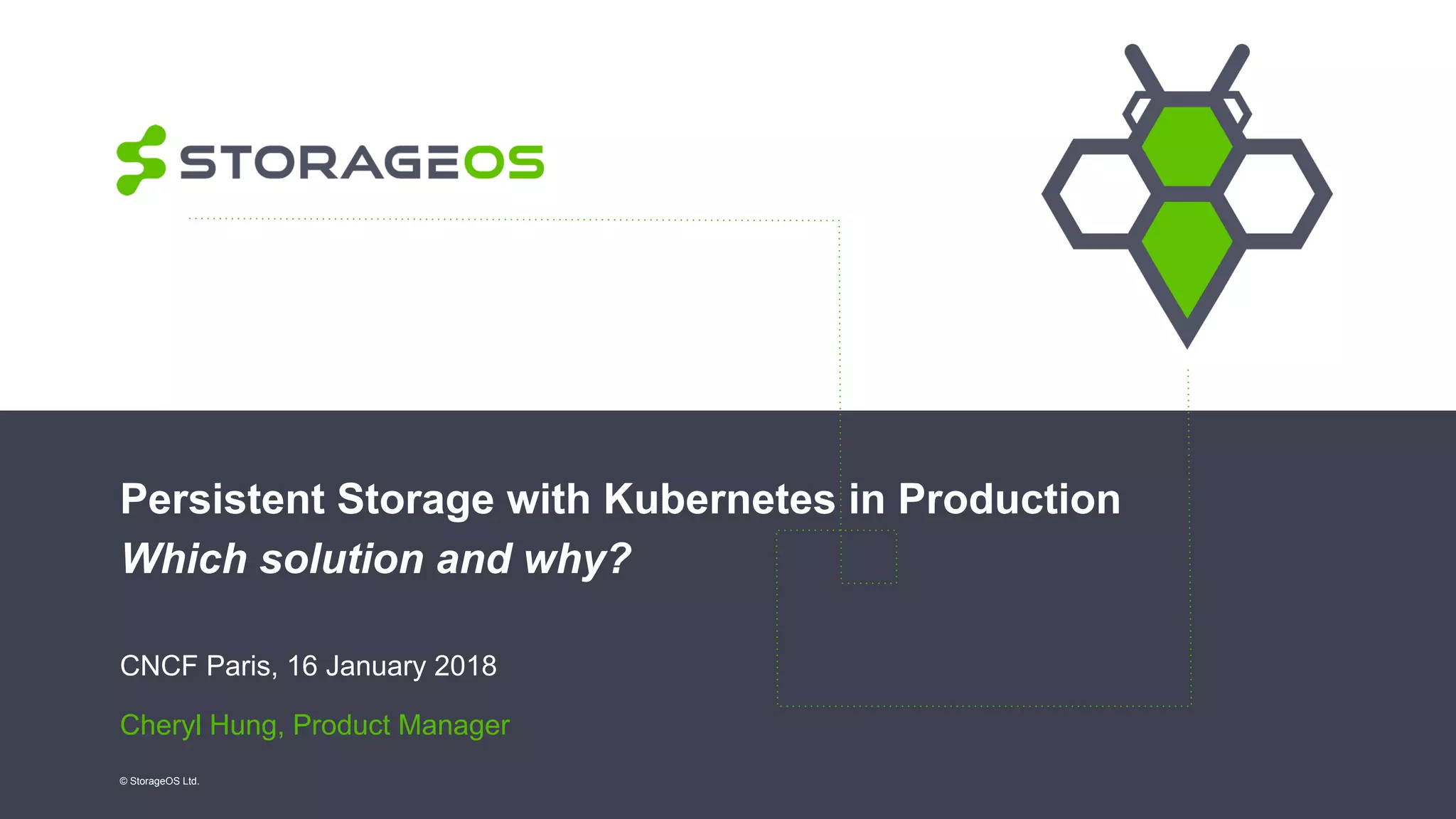 This document summarizes a presentation about persistent storage options for Kubernetes deployments. It discusses the challenges of managing state in cloud-native applications and outlines eight principles of cloud-native storage. It also provides guidance on how to evaluate storage needs based on use case, performance requirements, access method, and deployment model. The document recommends Software-Defined Storage like StorageOS for demanding workloads requiring high availability and deterministic performance, such as databases. It positions StorageOS as a platform-agnostic storage virtualization layer that can leverage commodity or cloud storage.