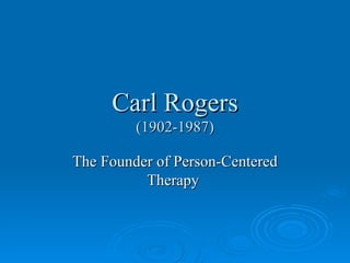 Carl Rogers, the founder of person-centered therapy, introduced his ideas in the 1940s, emphasizing the therapeutic relationship over technique and advocating for the equality of client and therapist. His approach is rooted in humanism, focusing on trust in the client's innate capacity for growth and change, while challenging traditional psychoanalytic methods. The therapy has been adapted for various cultures but faces limitations, such as preferences for structured approaches and cultural stigmas about mental health care.