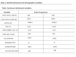 Step 2. Identifybehavioral and demographic variables