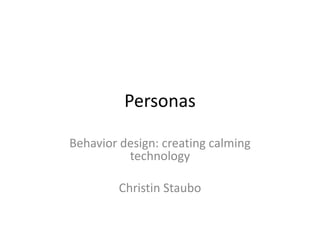 PersonasBehavior design: creating calming technologyChristin Staubo