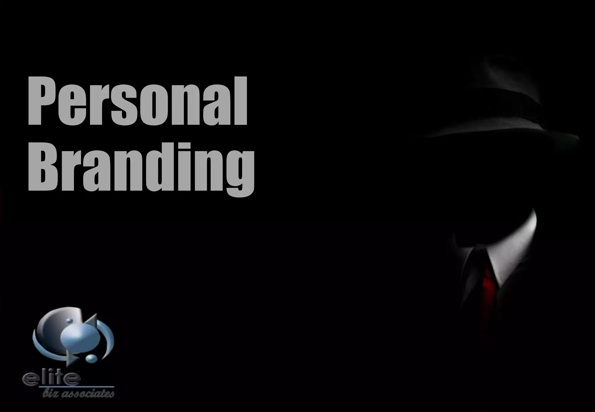 Personal branding involves creating a distinct image and collection of perceptions about yourself that differentiates you from others. To create an effective personal brand, you must decide what image you want to project, believe in your uniqueness, and capture your online presence by securing relevant web domains and social media accounts. You should then share useful information regularly online and in person, and work to become highly skilled in your areas of specialization to further strengthen your personal brand.