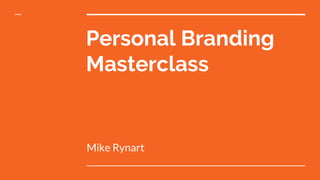 The personal branding masterclass by Mike Rynart focuses on understanding and building personal brands, emphasizing their importance for success and trust. It includes strategic steps for leveraging social media and email marketing to grow and monetize a personal brand, alongside practical tips for optimizing online profiles and audience engagement. Rynart encourages participants to define their unique value proposition and consistently create content that connects with their audience.