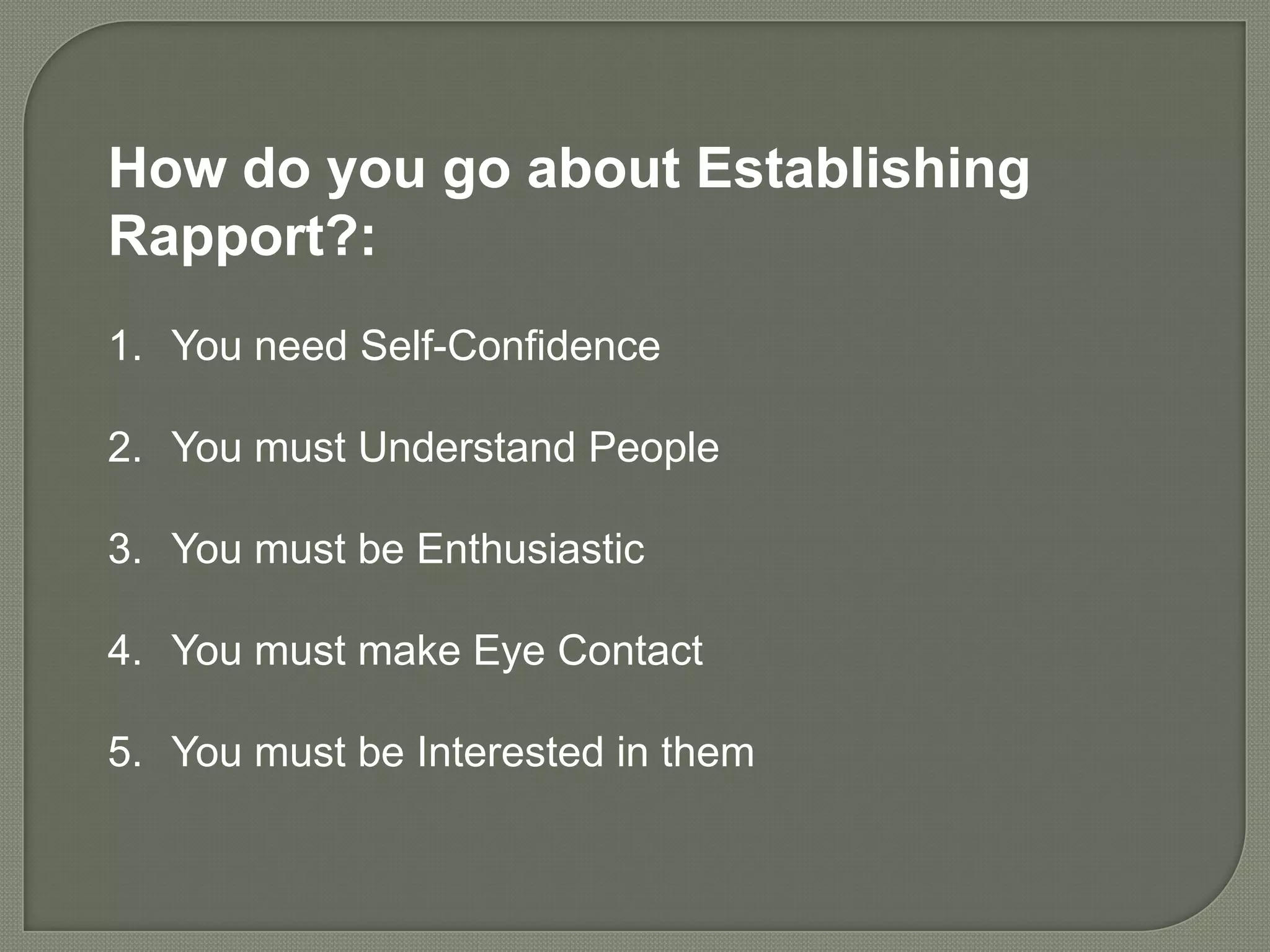 This document discusses personal communication skills and effective communication. It provides tips for establishing rapport through self-confidence, understanding people, enthusiasm, eye contact, and interest in others. Effective communication is critical for careers and personal lives, and requires using a variety of techniques to understand and be understood. Communication is transmitting information from a sender to a receiver through speaking, writing, visual images, and body language. Good communication skills include organizing thoughts, participating in discussions, body language, and listening. Barriers to communication can come from unwillingness to change approaches or lack of confidence. Active listening without distractions is important.