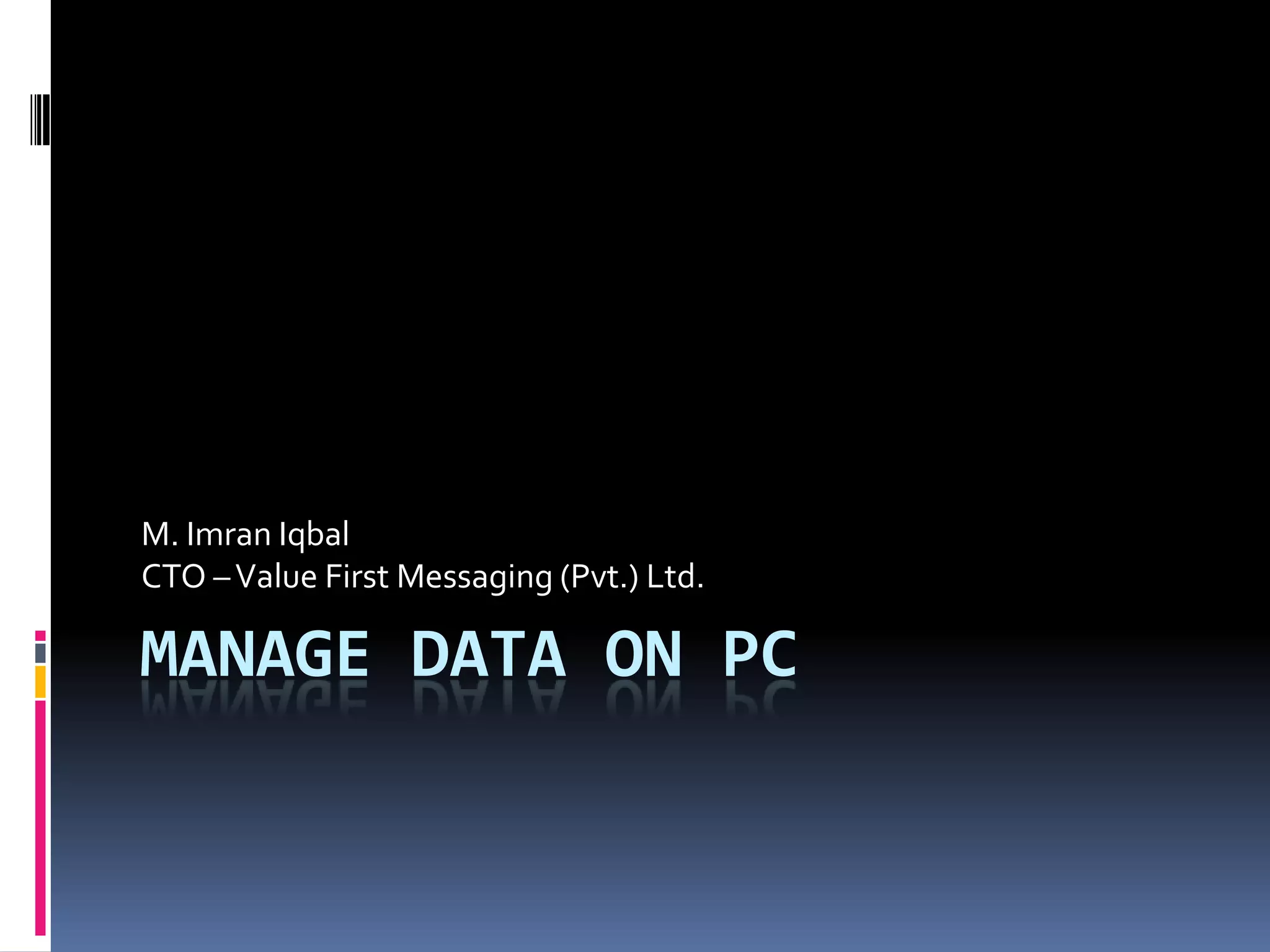 This document discusses how to effectively manage data on a personal computer. It recommends organizing data into a single root folder with nested subfolders based on file type. Specific subfolders suggested include documents, spreadsheets, presentations, photos and videos. Regularly cleaning and archiving older data is also advised. The document provides tips for naming files consistently and only archiving unneeded copies rather than deleting original files. Data backup is emphasized, such as to external disks, cloud servers or flash drives, and encryption is presented as an option to secure private information.