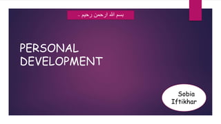 The document outlines Sobia Iftikhar's identification of five personal improvement areas, including dealing with negative thoughts, anxiety, and procrastination. It details the history of these issues over ten years and their negative impacts on her mental and physical health. Proposed solutions include positive thinking, time management, spiritual practices, and engaging in creative activities with her children.